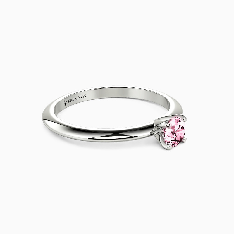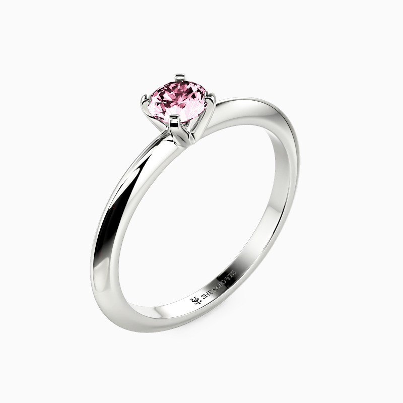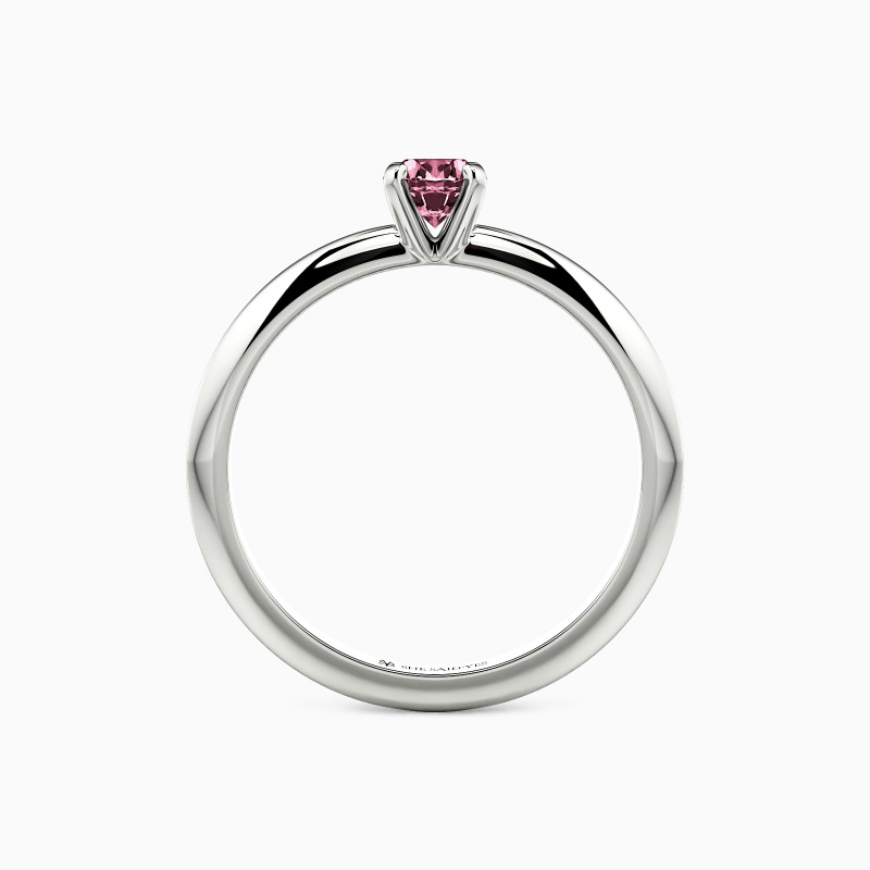 This solitaire ring combines simplicity with sophistication. A round-cut gem sits securely in a four-prong setting, while the knife edge shank offers a sleek, modern profile. The crisp lines of the band draw attention to the center stone, creating a harmonious balance. This refined design speaks to those who appreciate clean aesthetics and timeless elegance in their jewelry choices.