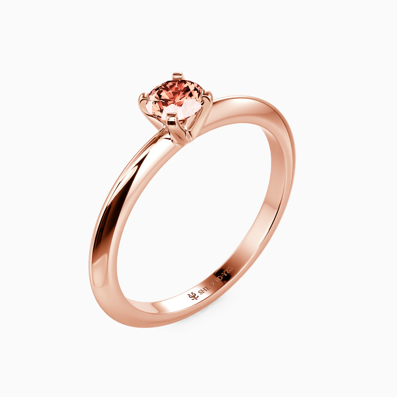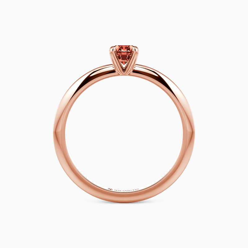 This solitaire ring combines simplicity with sophistication. A round-cut gem sits securely in a four-prong setting, while the knife edge shank offers a sleek, modern profile. The crisp lines of the band draw attention to the center stone, creating a harmonious balance. This refined design speaks to those who appreciate clean aesthetics and timeless elegance in their jewelry choices.