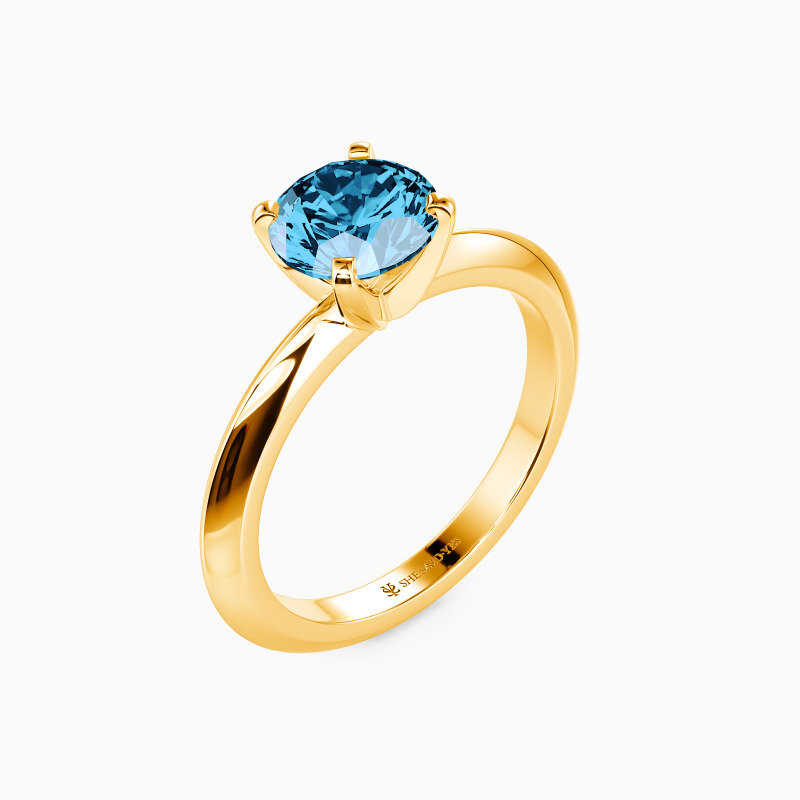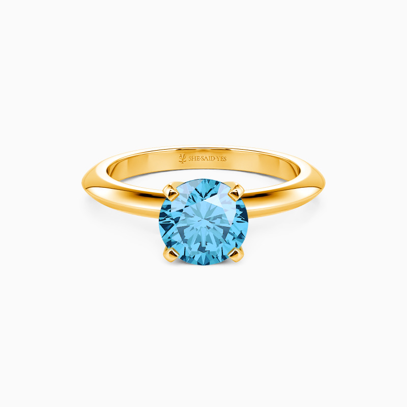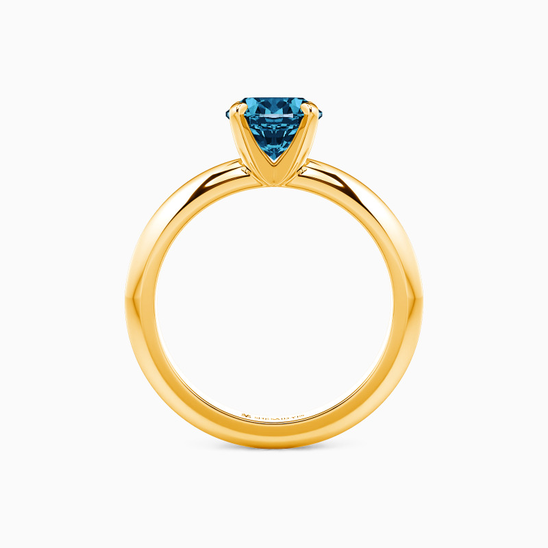 This solitaire ring combines simplicity with sophistication. A round-cut gem sits securely in a four-prong setting, while the knife edge shank offers a sleek, modern profile. The crisp lines of the band draw attention to the center stone, creating a harmonious balance. This refined design speaks to those who appreciate clean aesthetics and timeless elegance in their jewelry choices.