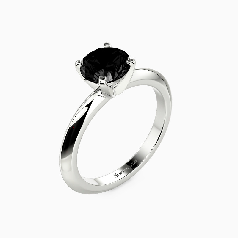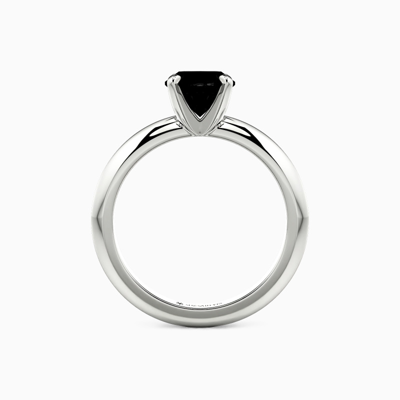This solitaire ring combines simplicity with sophistication. A round-cut gem sits securely in a four-prong setting, while the knife edge shank offers a sleek, modern profile. The crisp lines of the band draw attention to the center stone, creating a harmonious balance. This refined design speaks to those who appreciate clean aesthetics and timeless elegance in their jewelry choices.