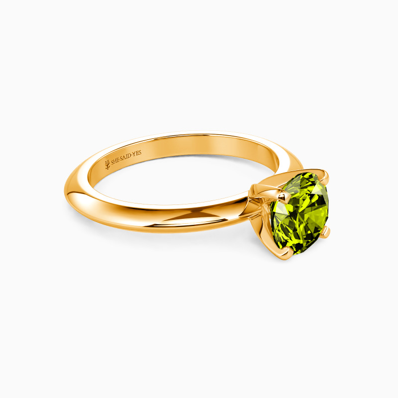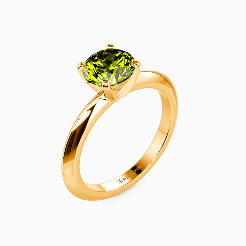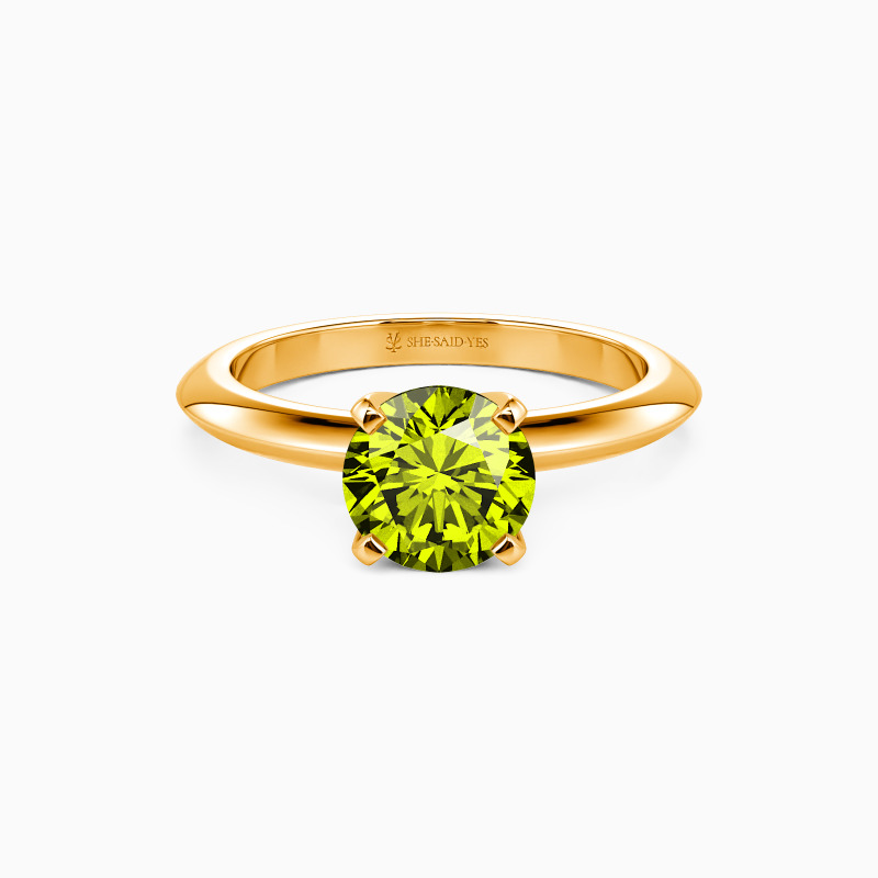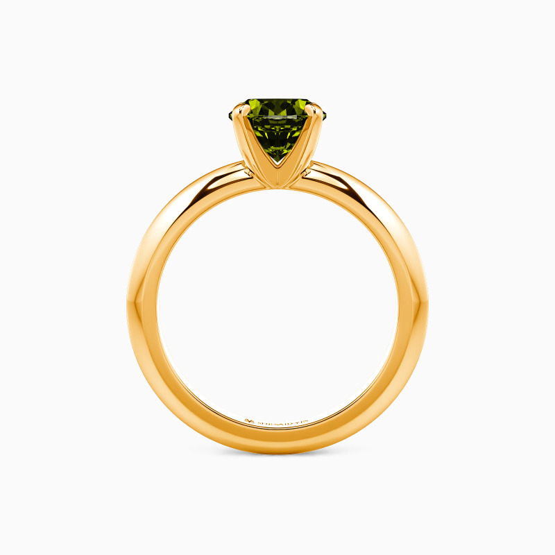 This solitaire ring combines simplicity with sophistication. A round-cut gem sits securely in a four-prong setting, while the knife edge shank offers a sleek, modern profile. The crisp lines of the band draw attention to the center stone, creating a harmonious balance. This refined design speaks to those who appreciate clean aesthetics and timeless elegance in their jewelry choices.