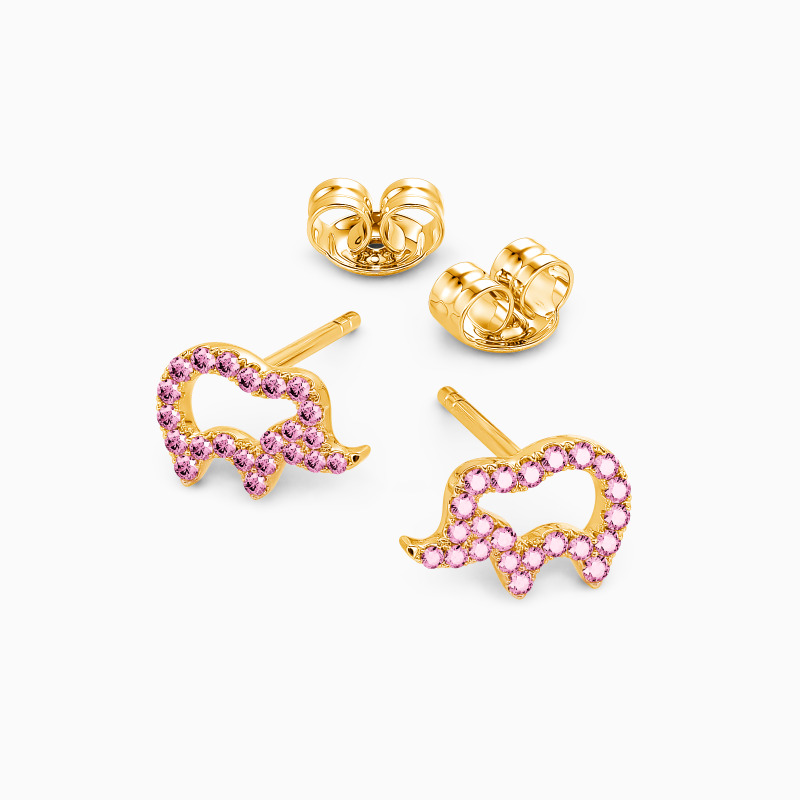 Adorable and glimmering. No one could refuse such lovely stud earrings. Drawing the distinct elephant outline into dainty little accessories, these pieces paves with many round-cut stones shimmering on the cute frame tidily. The best gift with fanciful style will leave you with an impression.