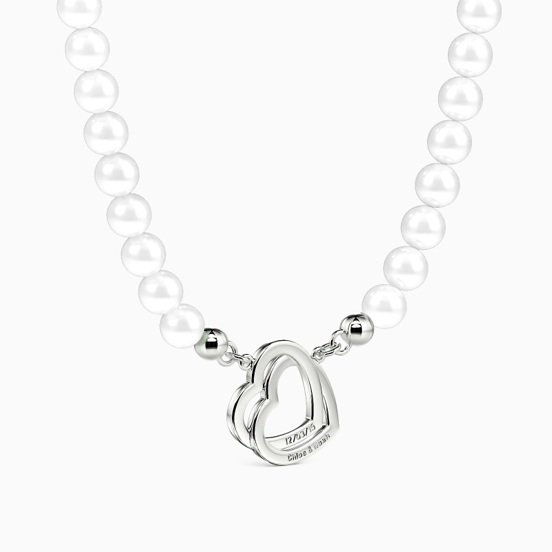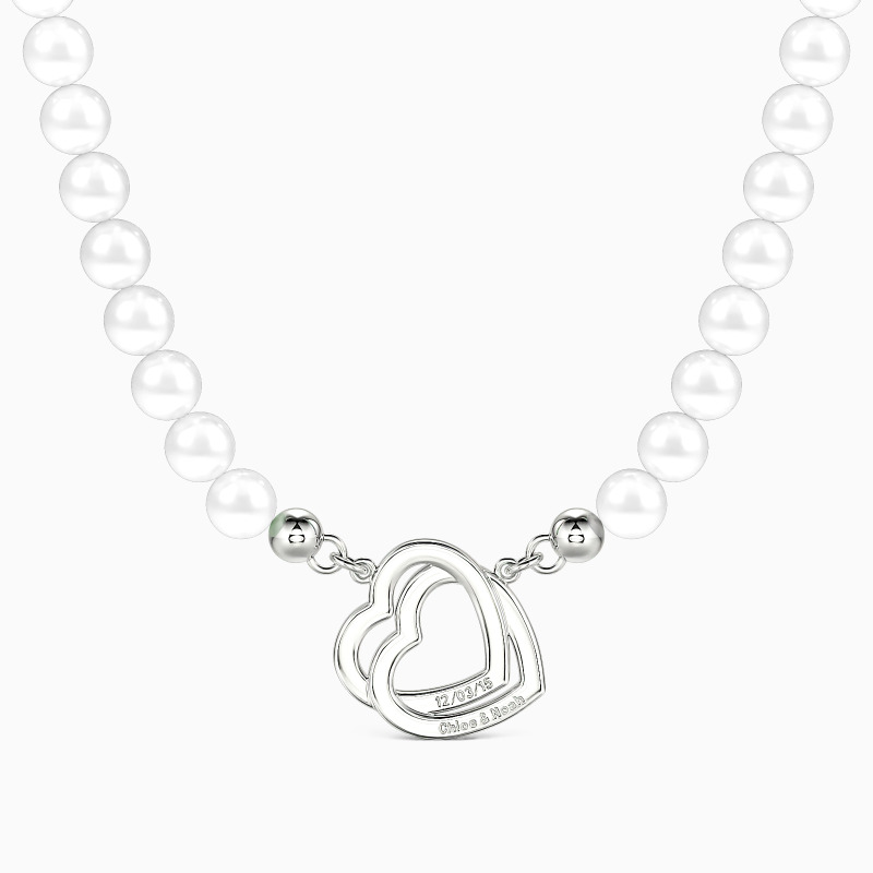An exquisite string of luminous pearls forms this necklace, symbolizing timeless elegance. Each pearl is meticulously selected for its unique glow, creating a stunning display of reflected light. The centerpiece, a pair of engravable intertwined hearts, provides a personal touch. This necklace transcends the boundaries of mere adornment, evolving into a cherished keepsake. It's a statement of sophistication, whether worn daily or saved for special occasions.