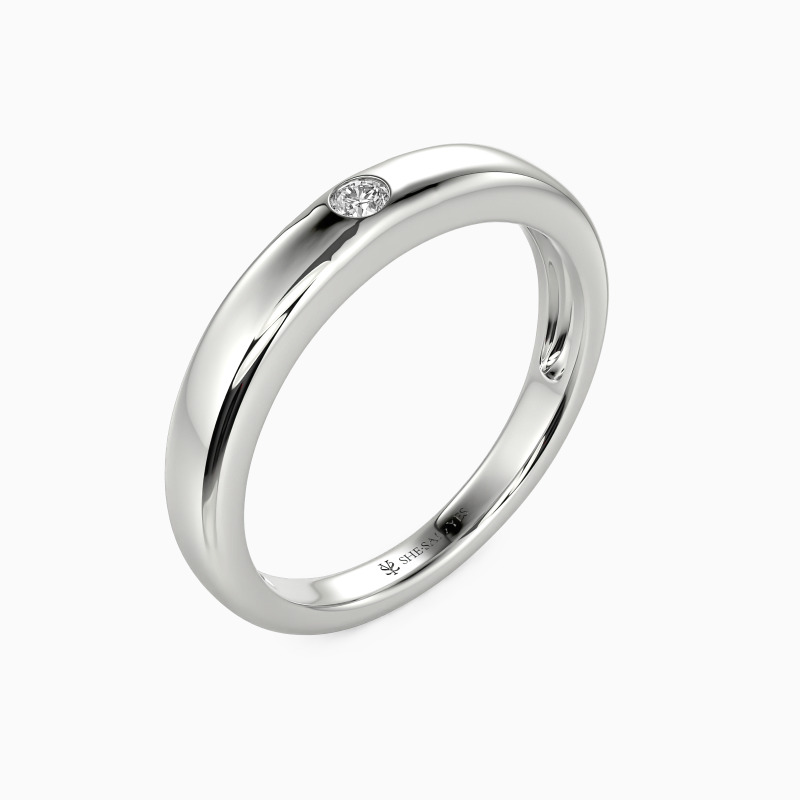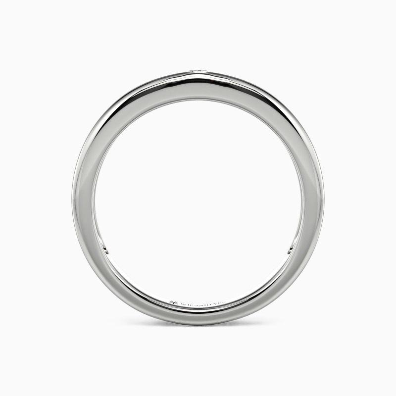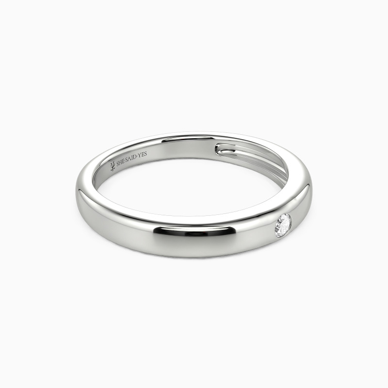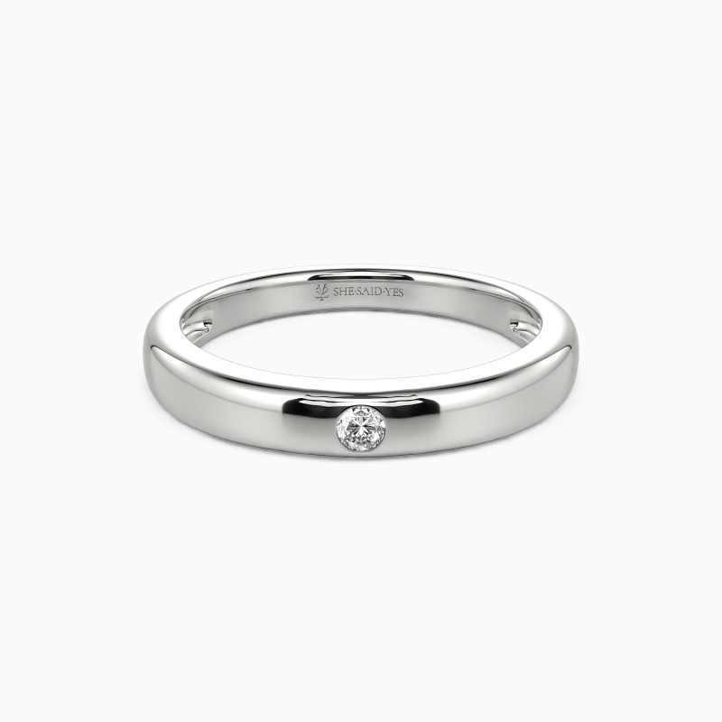 Radiating timeless elegance, this high-polish wedding band features a dazzling round gem set in a sleek burnish setting—a perfect fusion of modern precision and classic romance. The mirror-like finish amplifies every sparkle, while the secure, understated setting ensures brilliance takes center stage. A ring that whispers devotion and shines with unwavering promise.