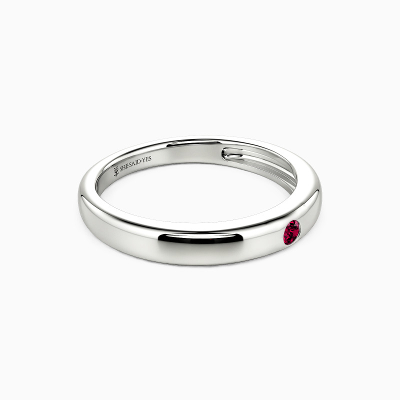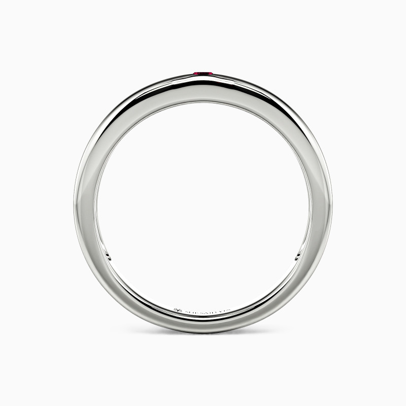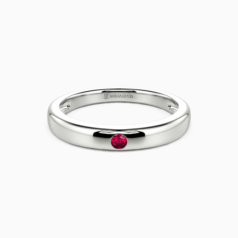 Radiating timeless elegance, this high-polish wedding band features a dazzling round gem set in a sleek burnish setting—a perfect fusion of modern precision and classic romance. The mirror-like finish amplifies every sparkle, while the secure, understated setting ensures brilliance takes center stage. A ring that whispers devotion and shines with unwavering promise.