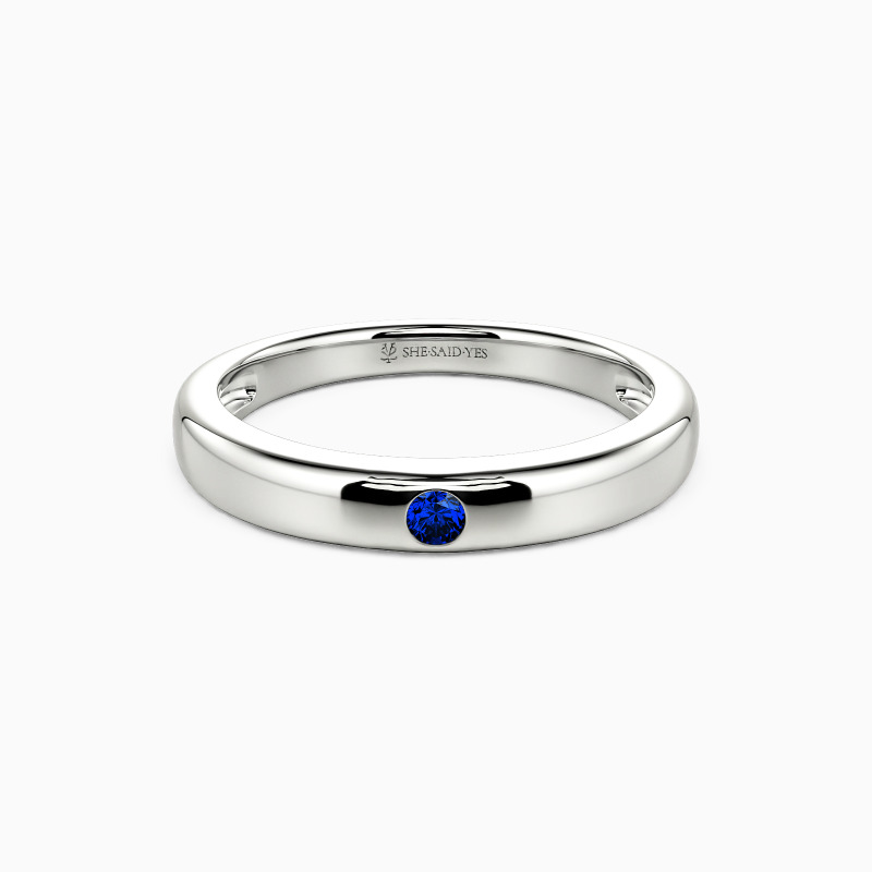 Radiating timeless elegance, this high-polish wedding band features a dazzling round gem set in a sleek burnish setting—a perfect fusion of modern precision and classic romance. The mirror-like finish amplifies every sparkle, while the secure, understated setting ensures brilliance takes center stage. A ring that whispers devotion and shines with unwavering promise.
