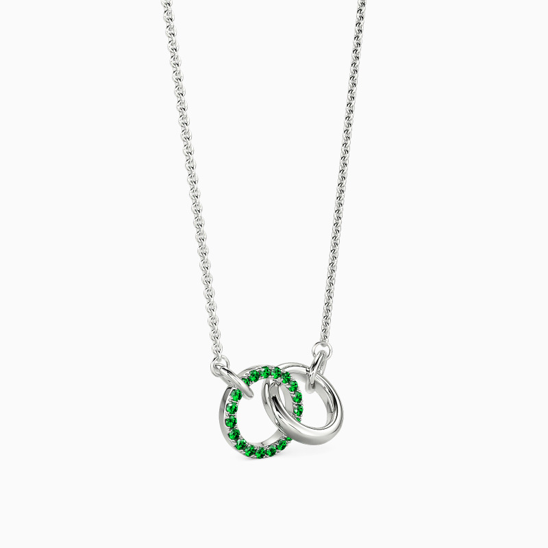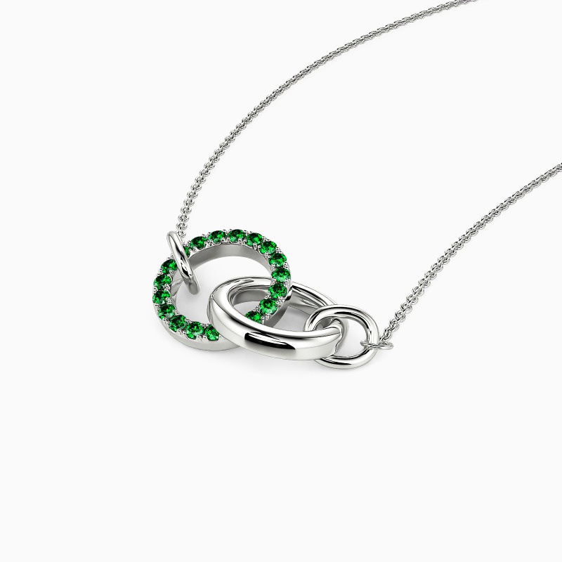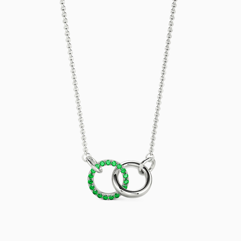 This versatile pendant embodies understated elegance through two gracefully interlocked circles. One circle sparkles with precisely set stones that capture light brilliantly, while its companion maintains a sleek, polished finish. Perfect for both everyday wear and special occasions, this refined design symbolizes the beautiful fusion of simplicity and luxury.