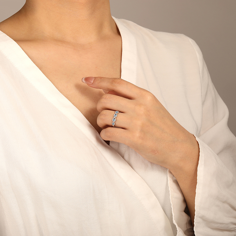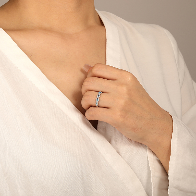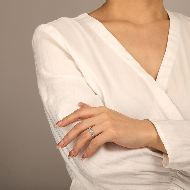 A forever cherished wedding ring with timeless elegance. Featuring a curvy twisted band, this piece is paved with rows of shining gem accents to achieve a delicate wave-like appearance. Gift her with this elegant ring and witness this unforgettable moment.