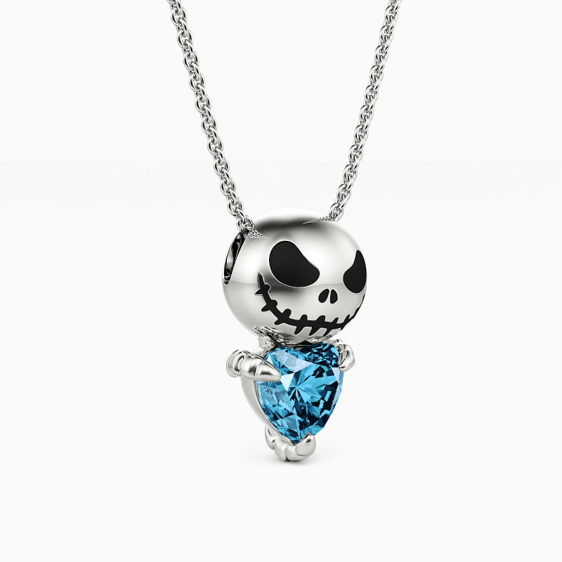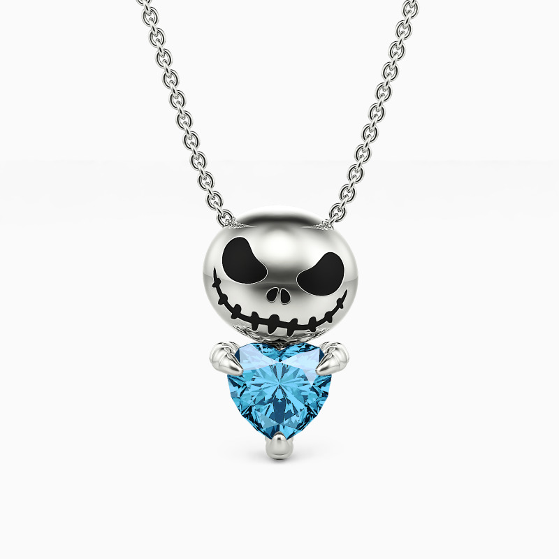 Expressing quirky style with sophisticated details, our unique pendant necklace features a delicate smiling skull and a sparkling heart-shaped gemstone set in the claws. Inspired by Nightmare Before Christmas, this trendy accessory is especially for those who love Gothic fashion.
