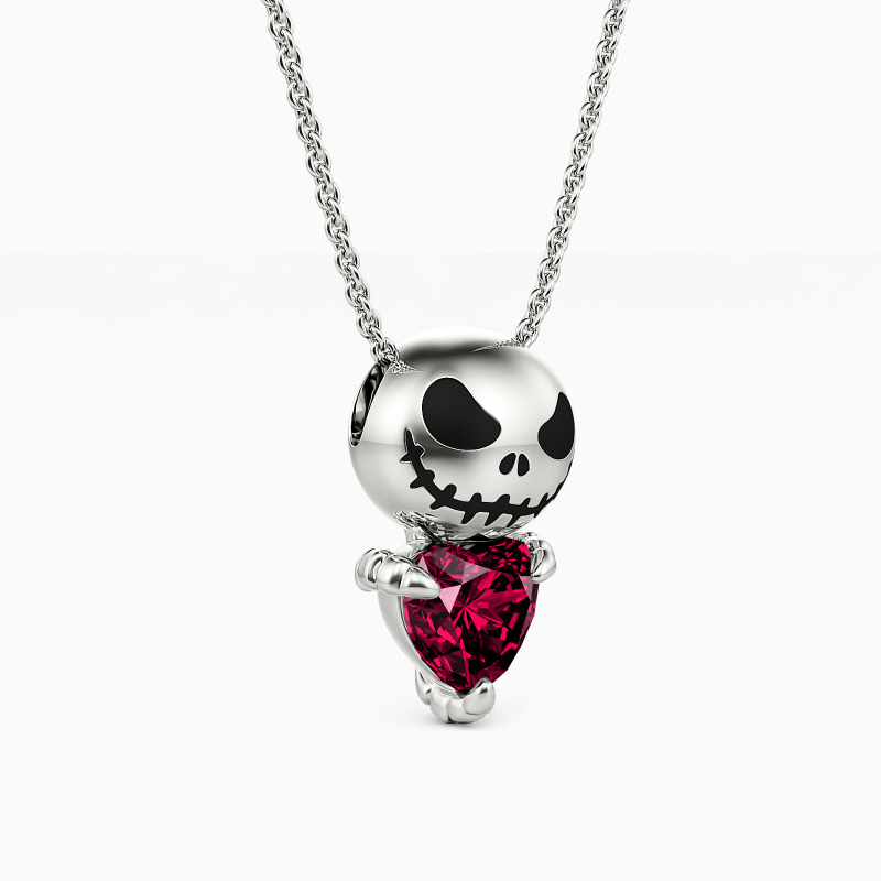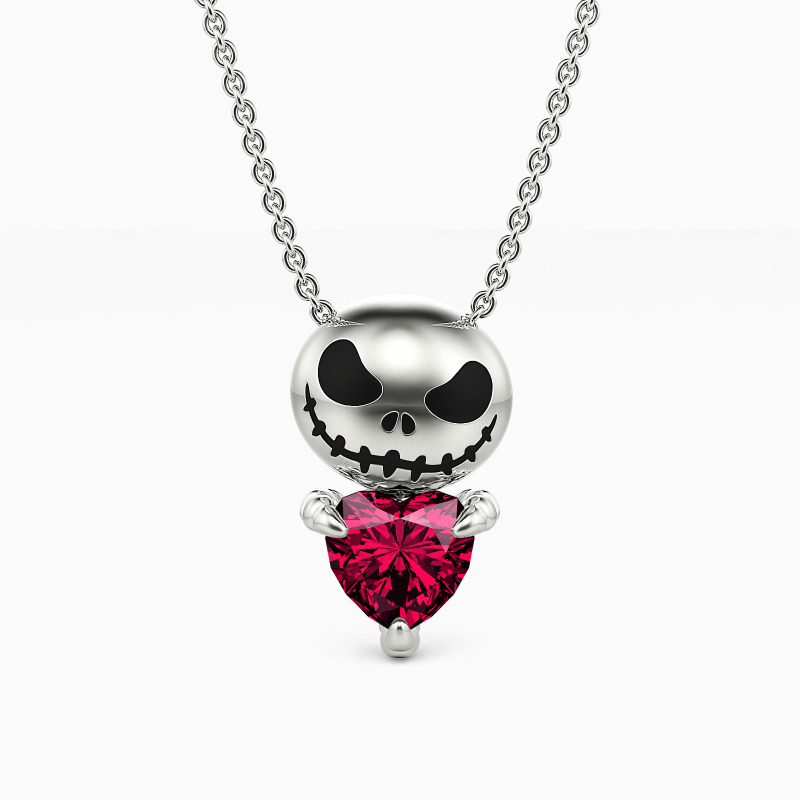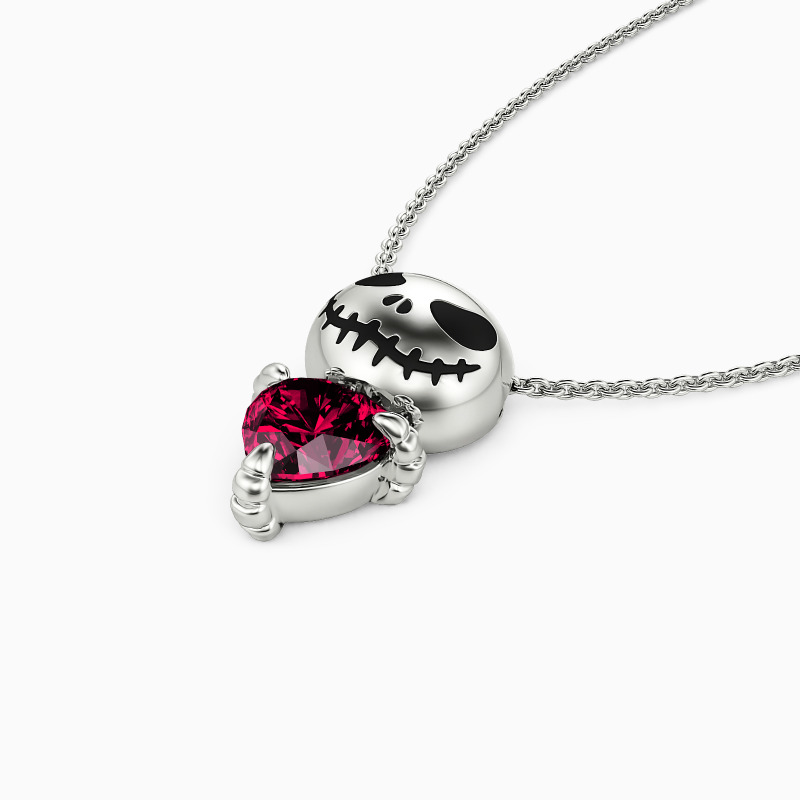 Expressing quirky style with sophisticated details, our unique pendant necklace features a delicate smiling skull and a sparkling heart-shaped gemstone set in the claws. Inspired by Nightmare Before Christmas, this trendy accessory is especially for those who love Gothic fashion.