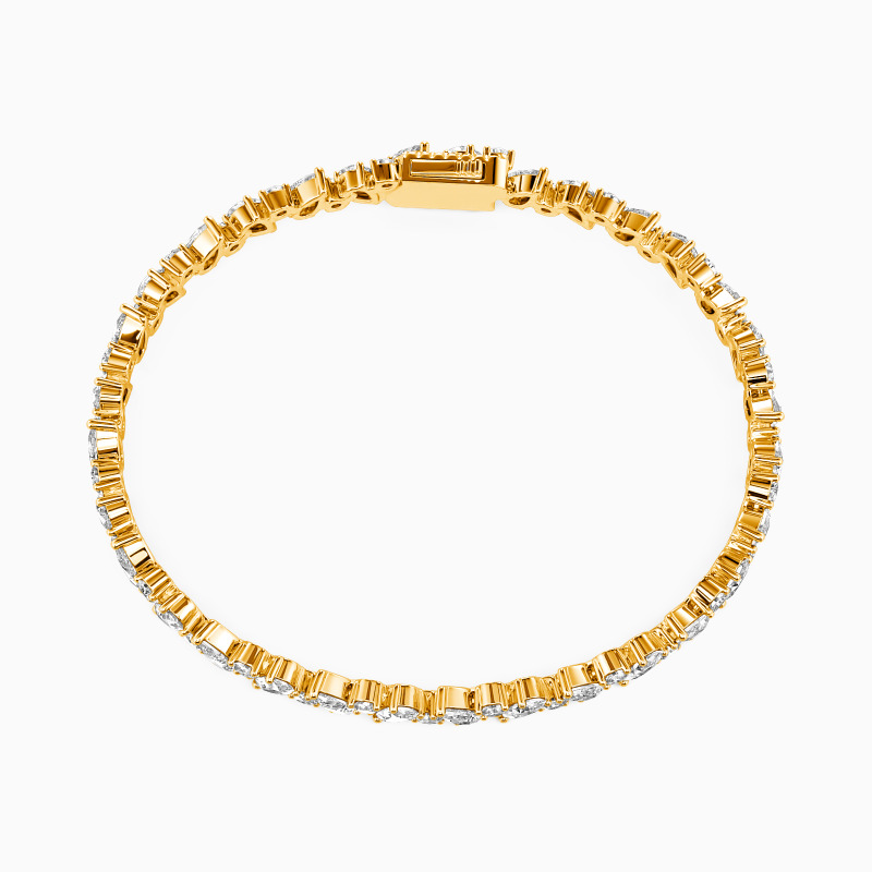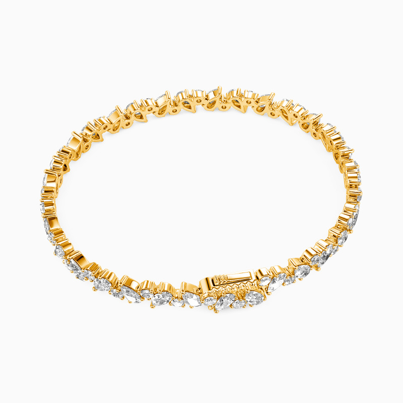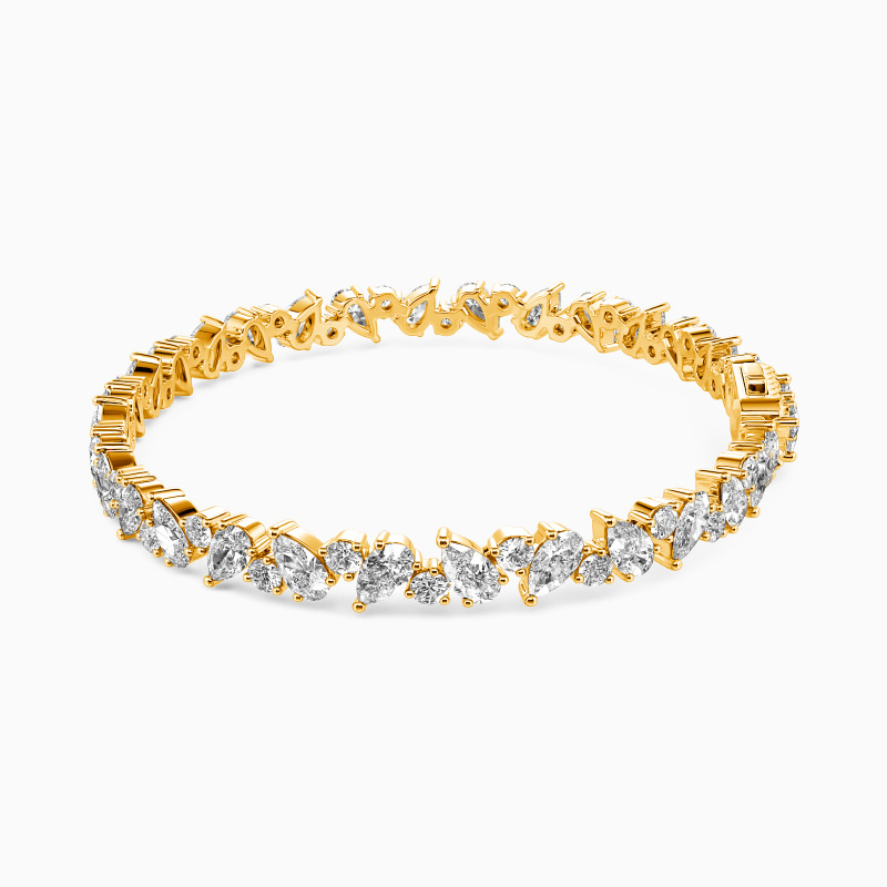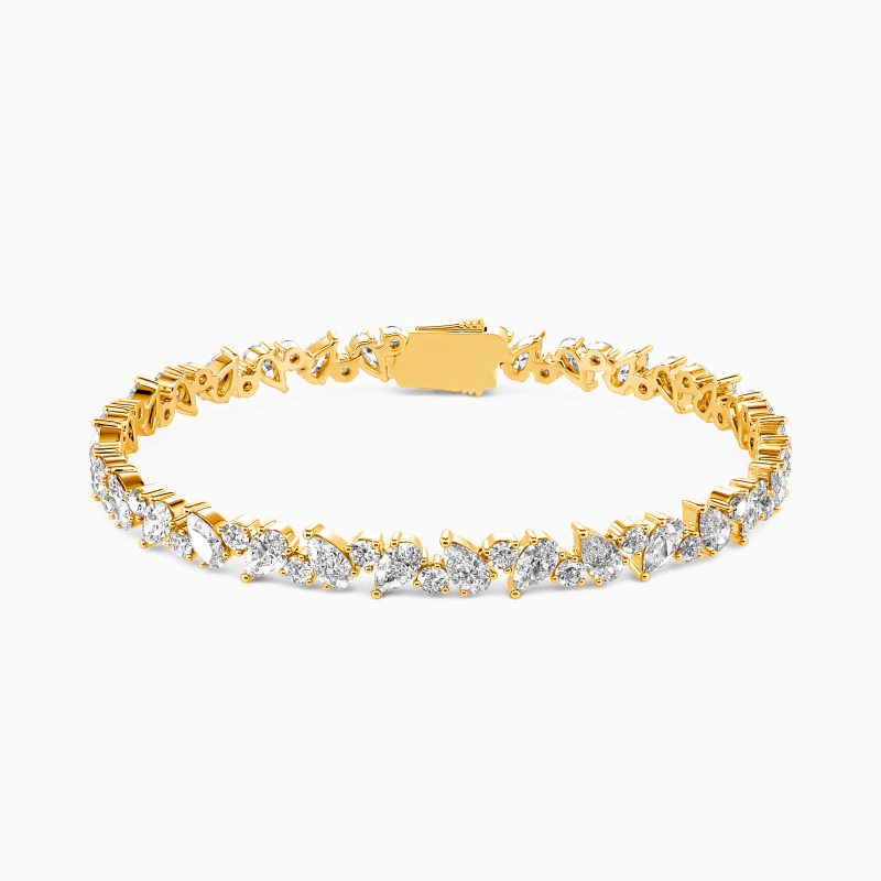 Make a statement with this tennis bracelet. It showcases a dazzling arrangement of round and pear-cut gemstones, thoughtfully scattered along the bracelet. The combination of shapes creates a dynamic and eye-catching design, reflecting your distinct sense of style and sophistication. Perfect for any occasion, this bracelet is a true showstopper.