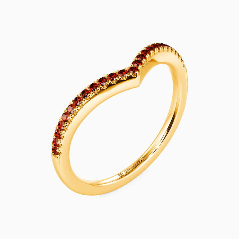 Embrace the allure of this v-shaped wedding band, a symbol of eternal unity and commitment. Paved with a shimmering array of stones, this band radiates with a brilliance that complements any style. Perfect for those who appreciate sleek design and timeless elegance, this band is a beautiful addition to any bridal set, completing a match made in heaven.