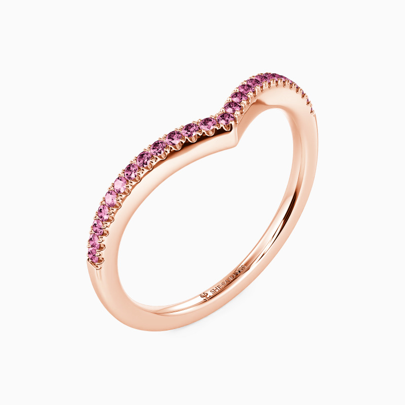 Embrace the allure of this v-shaped wedding band, a symbol of eternal unity and commitment. Paved with a shimmering array of stones, this band radiates with a brilliance that complements any style. Perfect for those who appreciate sleek design and timeless elegance, this band is a beautiful addition to any bridal set, completing a match made in heaven.