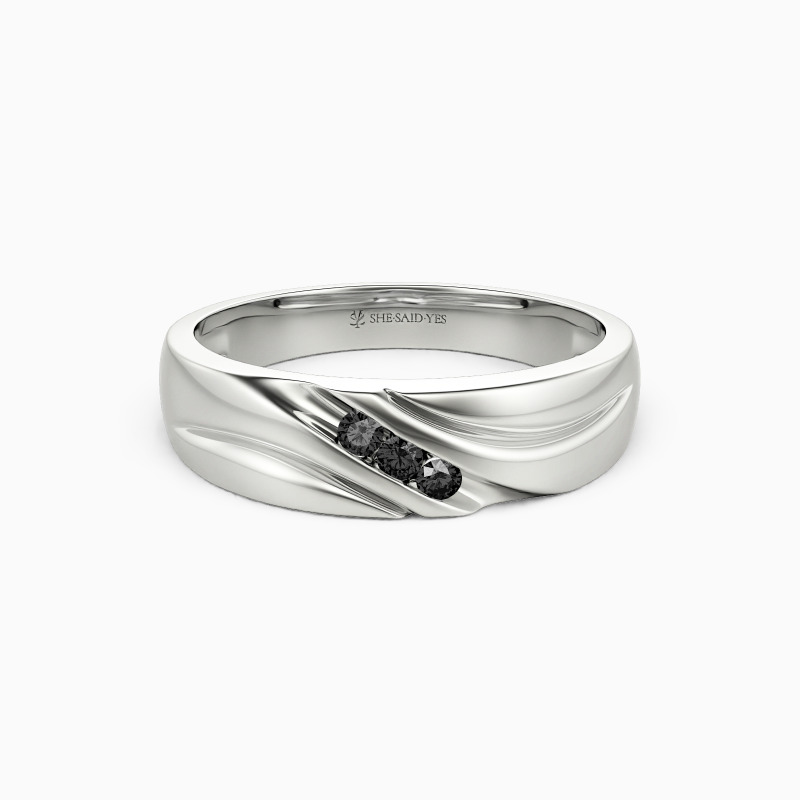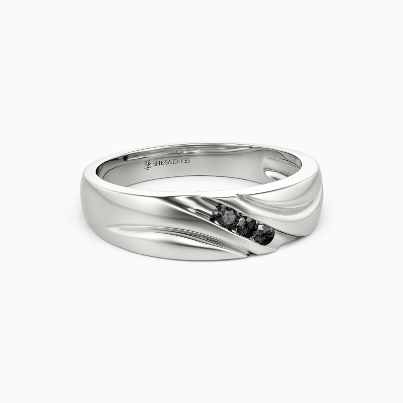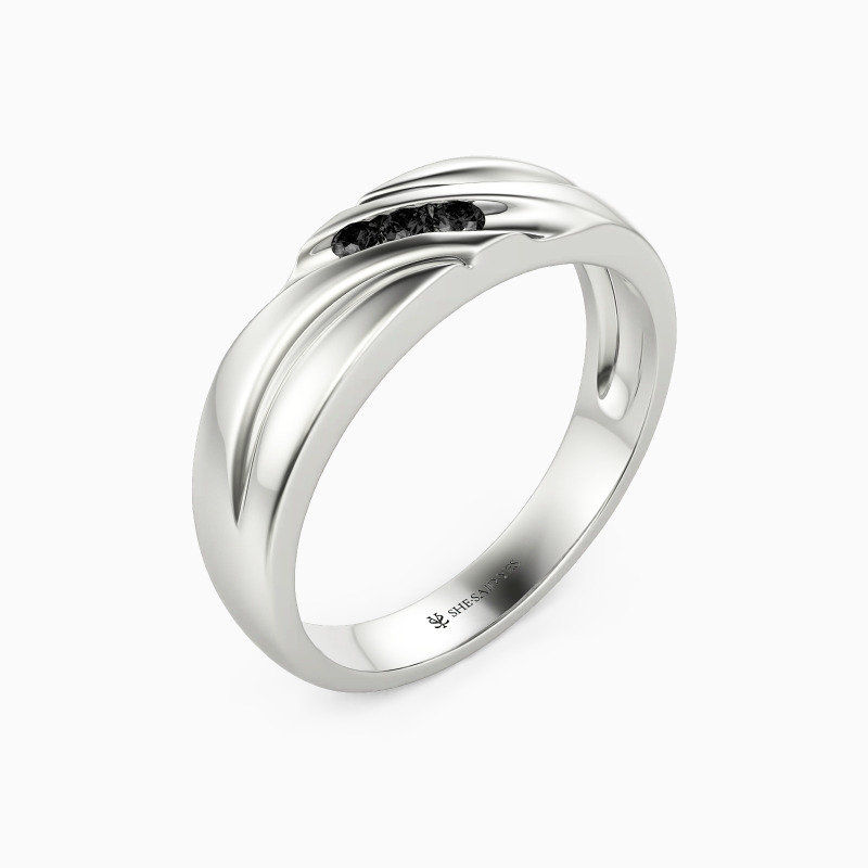 Simple yet stylish. This men's ring will appeal to your beloved for a glance. Crafted in a polished metal band and three sculptured curves naturally on the surface, this ring is accentuated by treble round-cut stones hidden in the unique design to add a touch of extra glisten. Best choice for men in love.