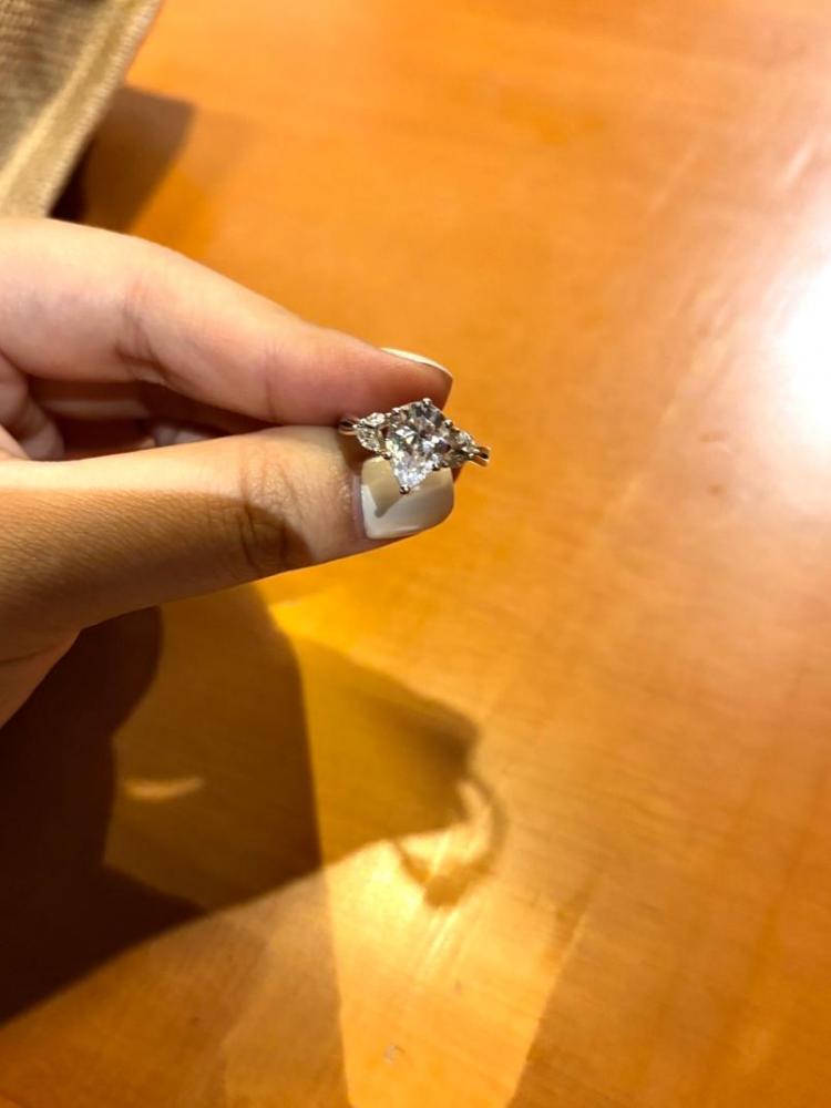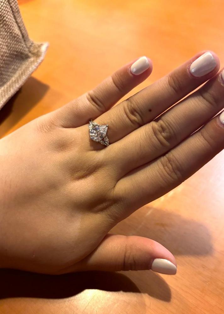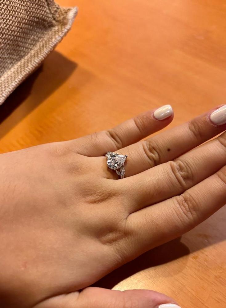 "Sun Glint" 2ct Pear Cut Side Stone Engagement Ring