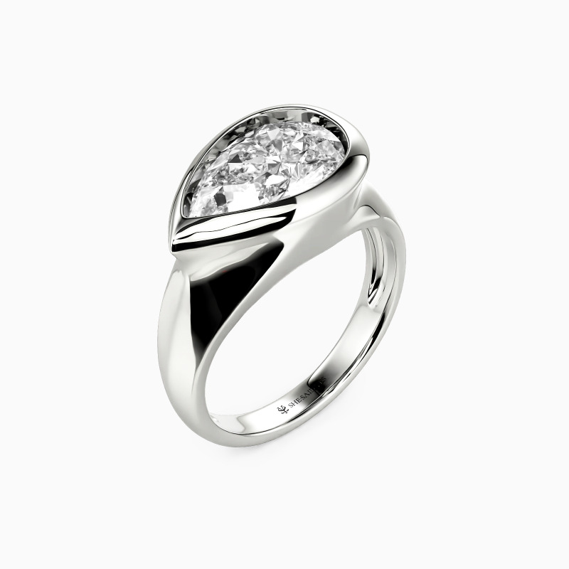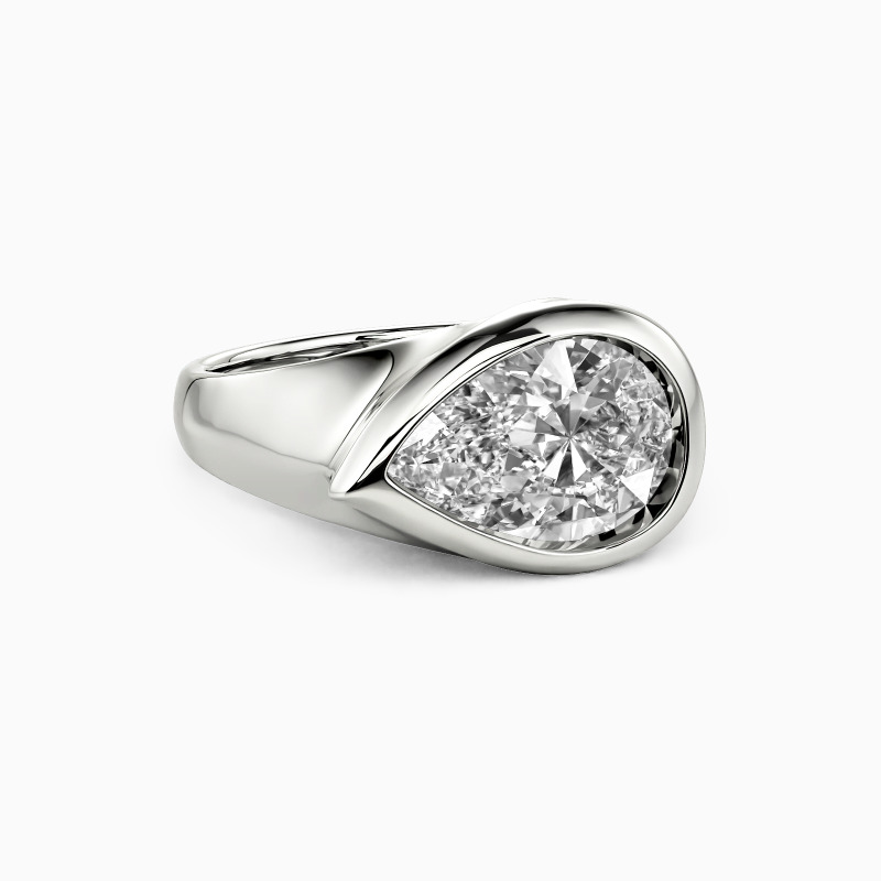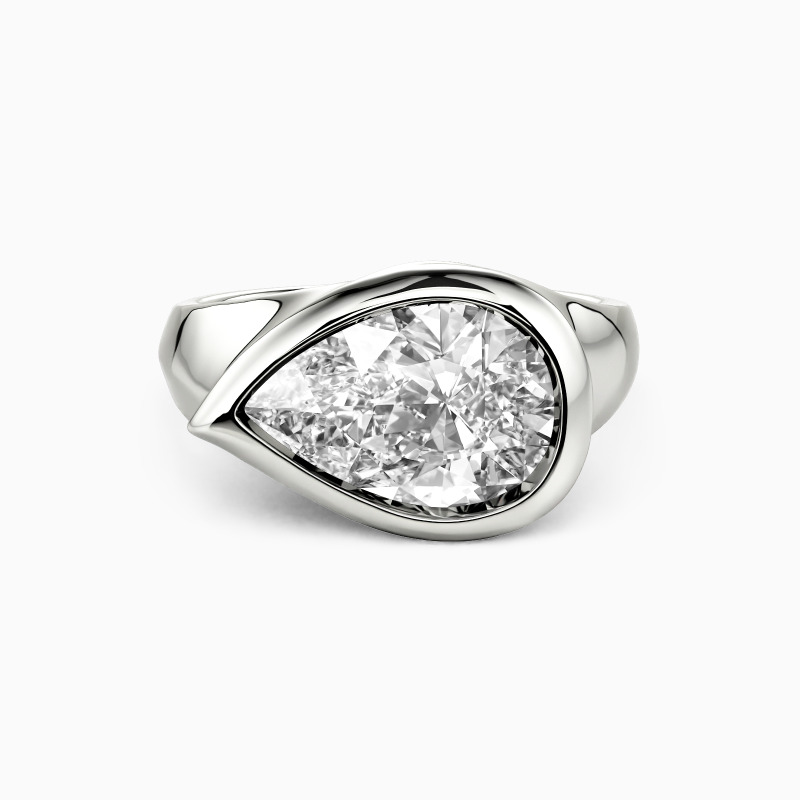 Showcase the ultimate grace and sheen of the pear-cut gemstone; the gorgeous solitaire engagement ring must be an eye-catching treasure in your jewelry box. Well-crafted with a polished shank, the sizable center stone is entirely wrapped by the sleek bezel. The charm of the modern design will show a new trend.