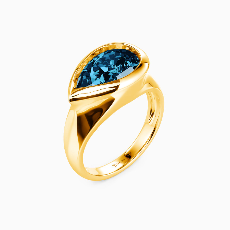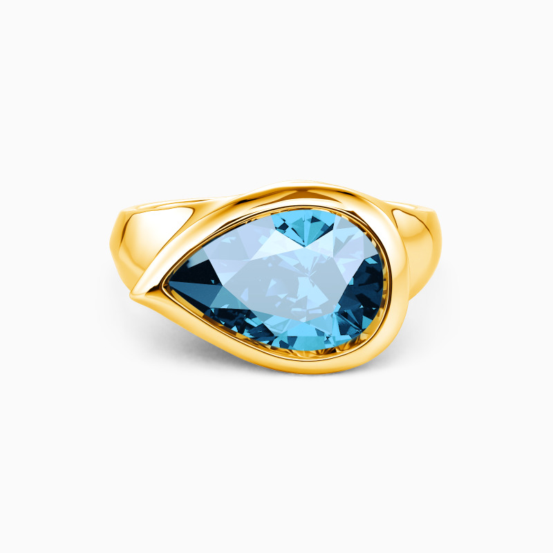 Showcase the ultimate grace and sheen of the pear-cut gemstone; the gorgeous solitaire engagement ring must be an eye-catching treasure in your jewelry box. Well-crafted with a polished shank, the sizable center stone is entirely wrapped by the sleek bezel. The charm of the modern design will show a new trend.