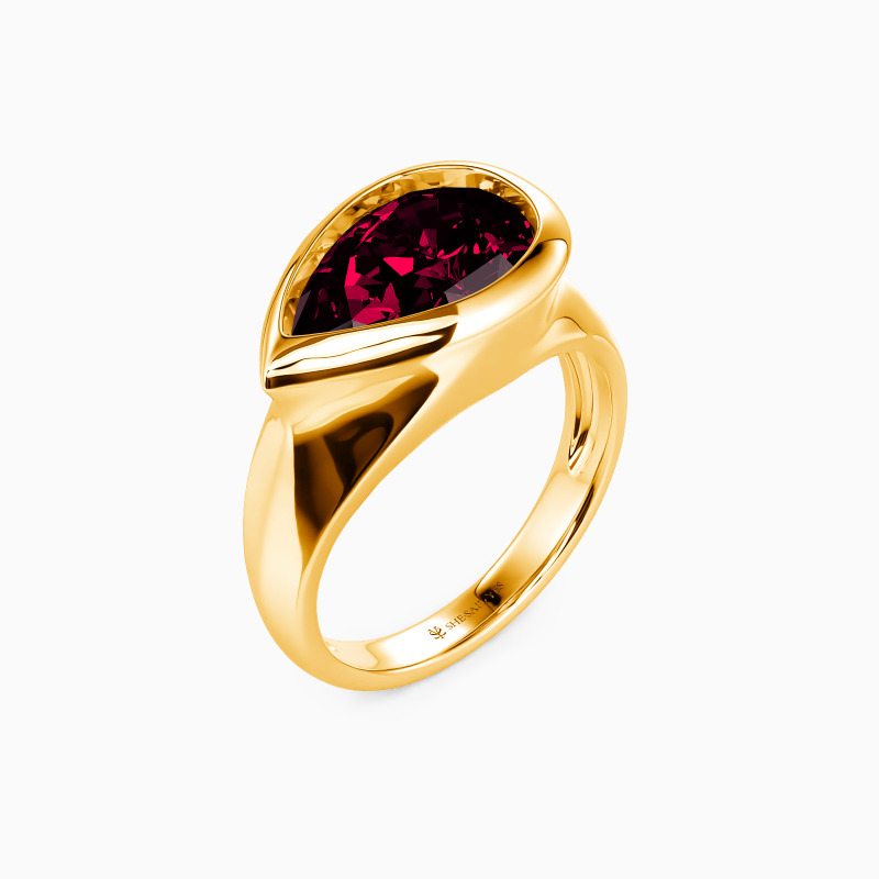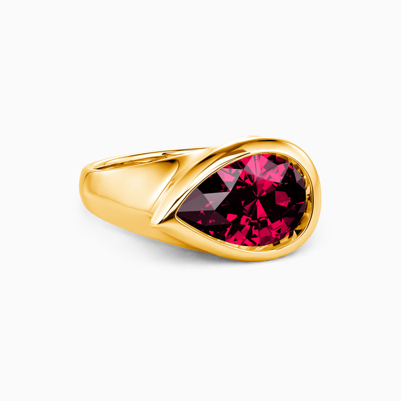 Showcase the ultimate grace and sheen of the pear-cut gemstone; the gorgeous solitaire engagement ring must be an eye-catching treasure in your jewelry box. Well-crafted with a polished shank, the sizable center stone is entirely wrapped by the sleek bezel. The charm of the modern design will show a new trend.