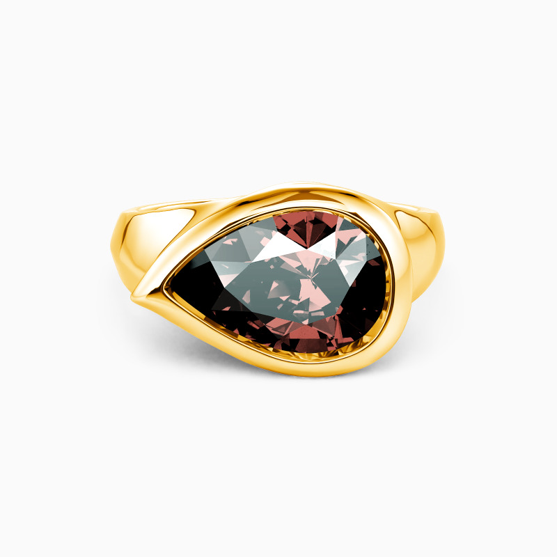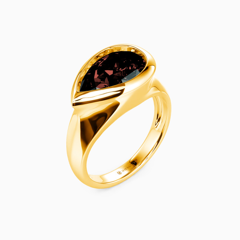 Showcase the ultimate grace and sheen of the pear-cut gemstone; the gorgeous solitaire engagement ring must be an eye-catching treasure in your jewelry box. Well-crafted with a polished shank, the sizable center stone is entirely wrapped by the sleek bezel. The charm of the modern design will show a new trend.