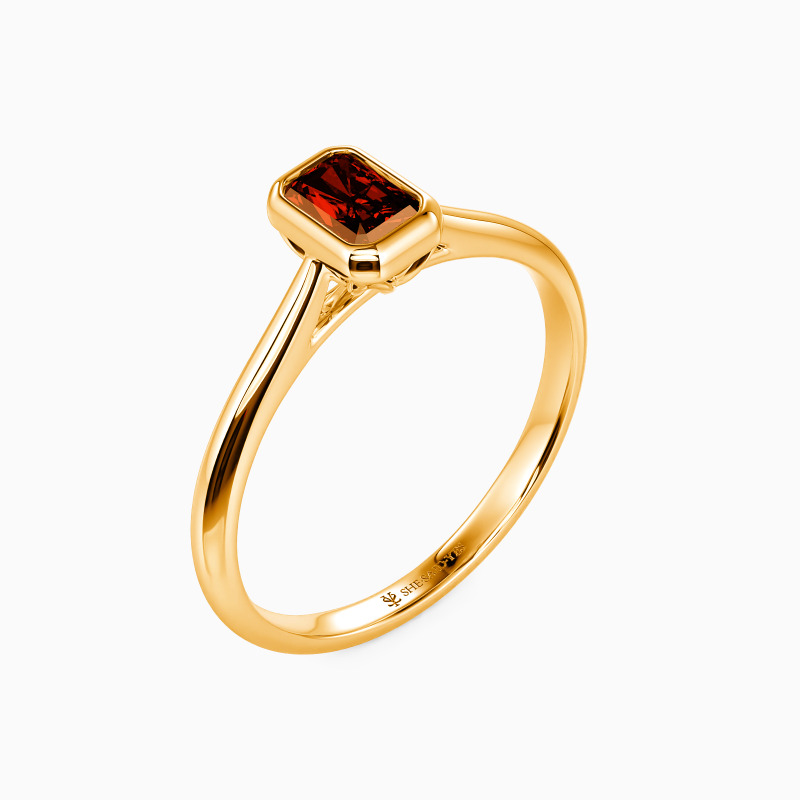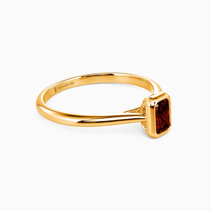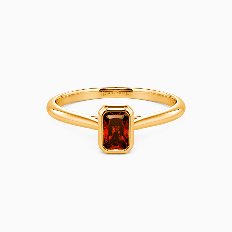 Designed with the ultimate minimalist aesthetic, SHE·SAID·YES provides you with a gorgeous solitaire engagement ring. Featuring a brilliant radiant-cut gem in a precious bezel, this piece shines stunningly from the center. A buffed shank in tapered style compliments its elegance and brings you a more delicate beauty.