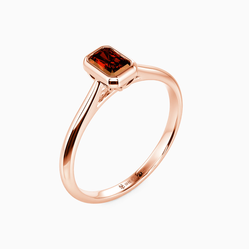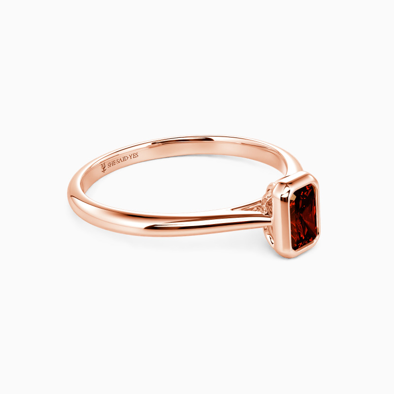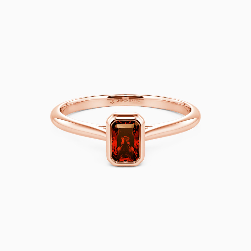 Designed with the ultimate minimalist aesthetic, SHE·SAID·YES provides you with a gorgeous solitaire engagement ring. Featuring a brilliant radiant-cut gem in a precious bezel, this piece shines stunningly from the center. A buffed shank in tapered style compliments its elegance and brings you a more delicate beauty.