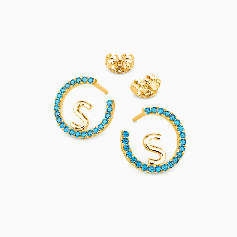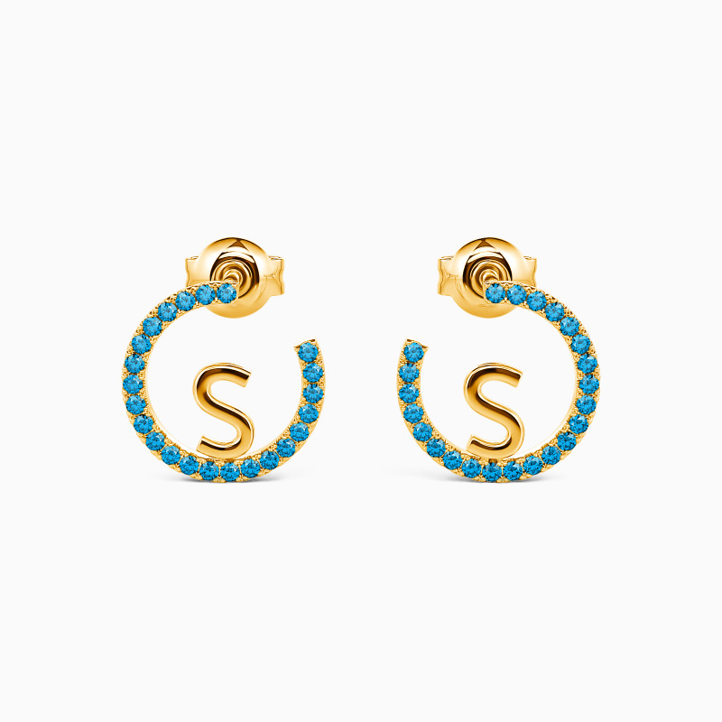 Add flair to your everyday ensemble with these personalized stud earrings. The miniature circle is intricately paved with round gemstones, creating a sparkling halo around a customizable initial. Subtly showcase what matters most with this pair of dainty gem-encrusted earrings. Customize the middle letter with your monogram for an adornment as unique as you are.