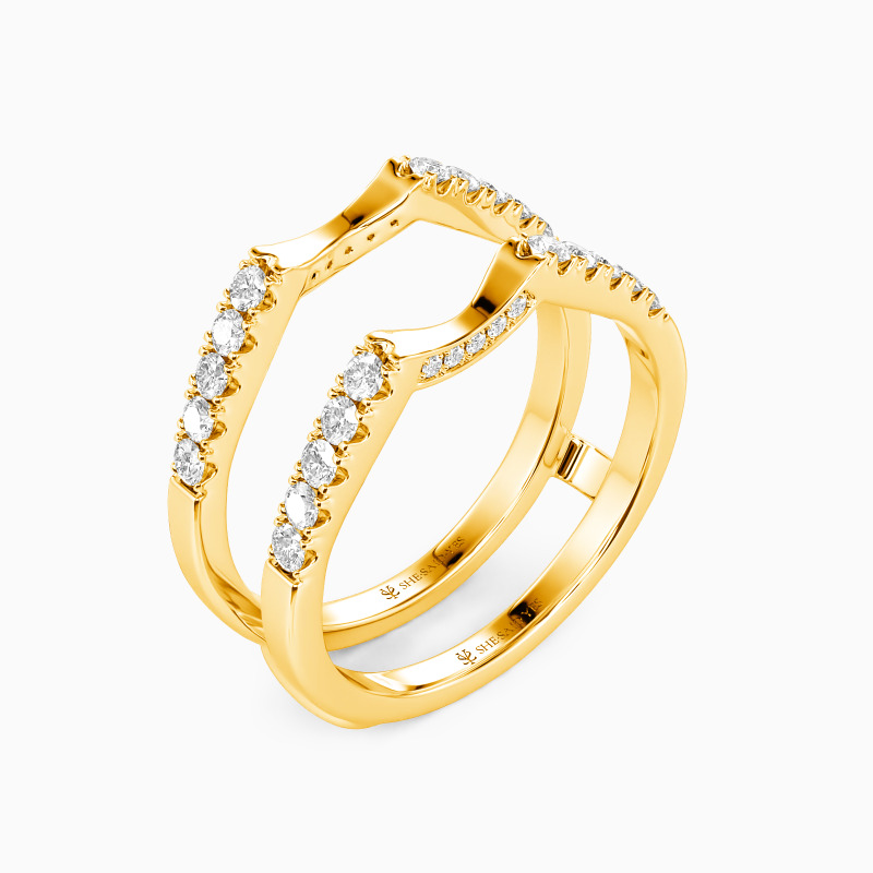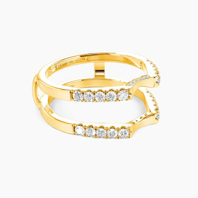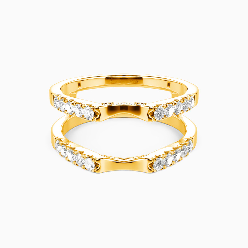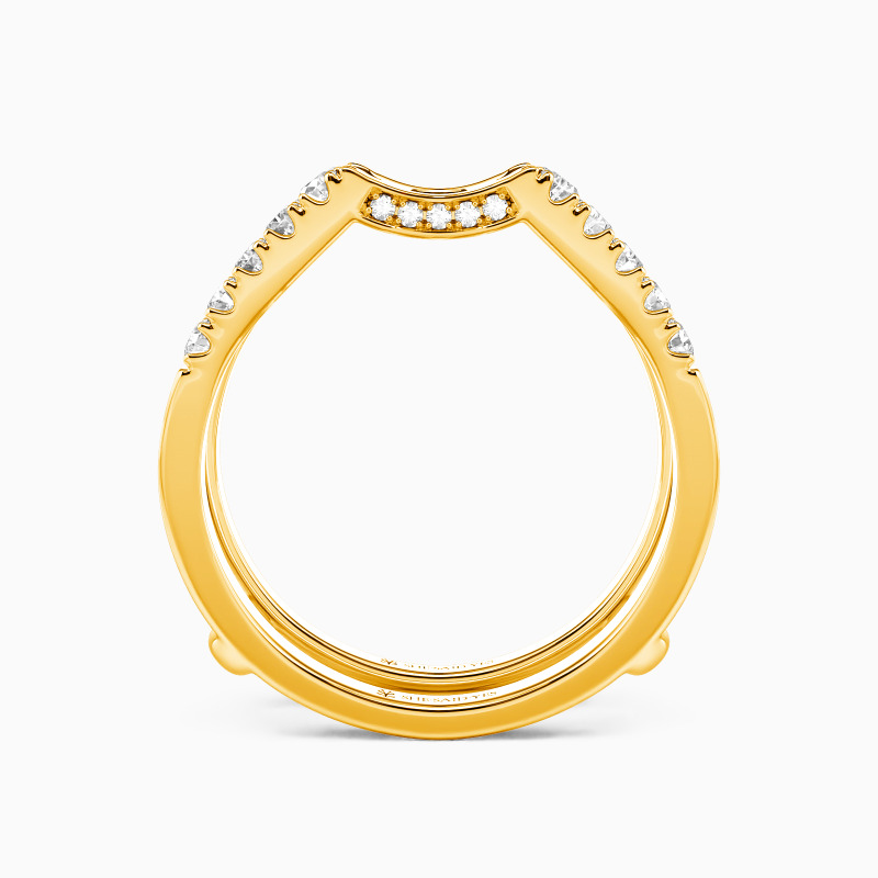 A masterpiece of intricate elegance, this enhancer ring features a graceful cathedral design, its sweeping arches adorned with a dazzling pavé shank. Hidden stones add a whisper of surprise, catching the light from unexpected angles. Designed to elevate any bridal set, it blends timeless sophistication with a touch of modern mystery.