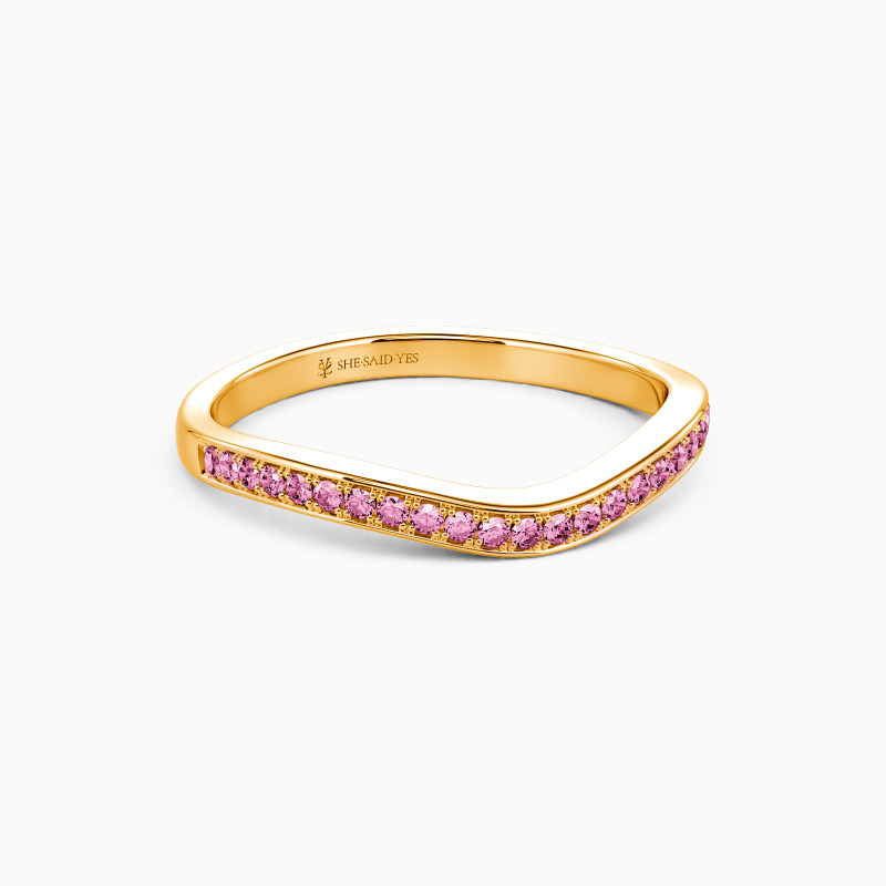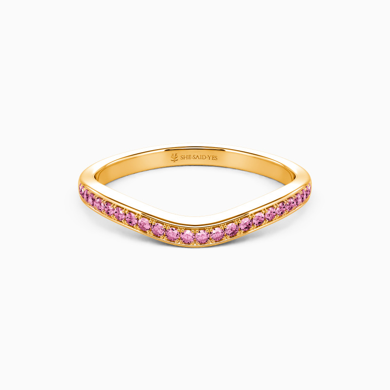A stylish wedding band fit for your everyday wearing. It features a slightly curved band with a glittering channel setting covering the shank. Presenting beautiful femininity, it is a must-have in your wardrobe.