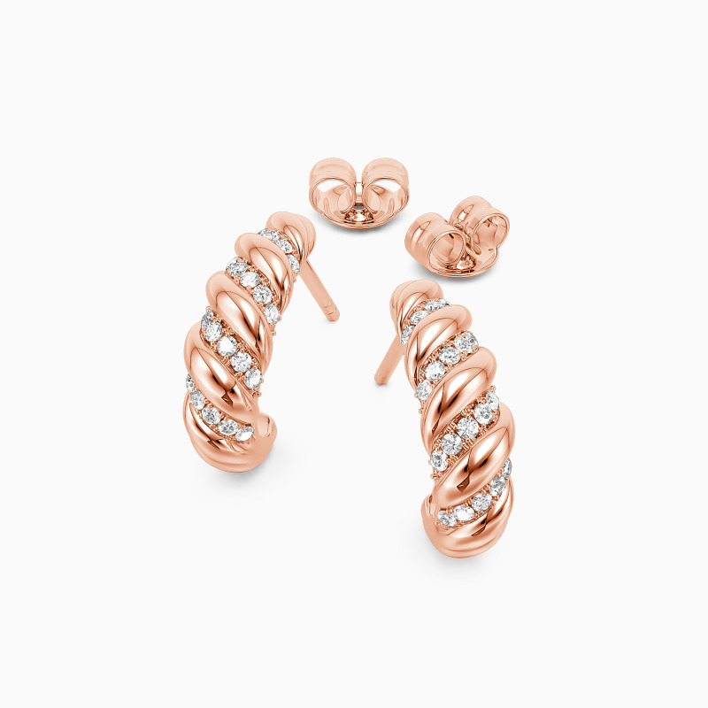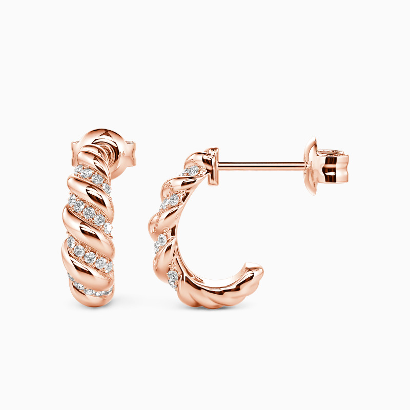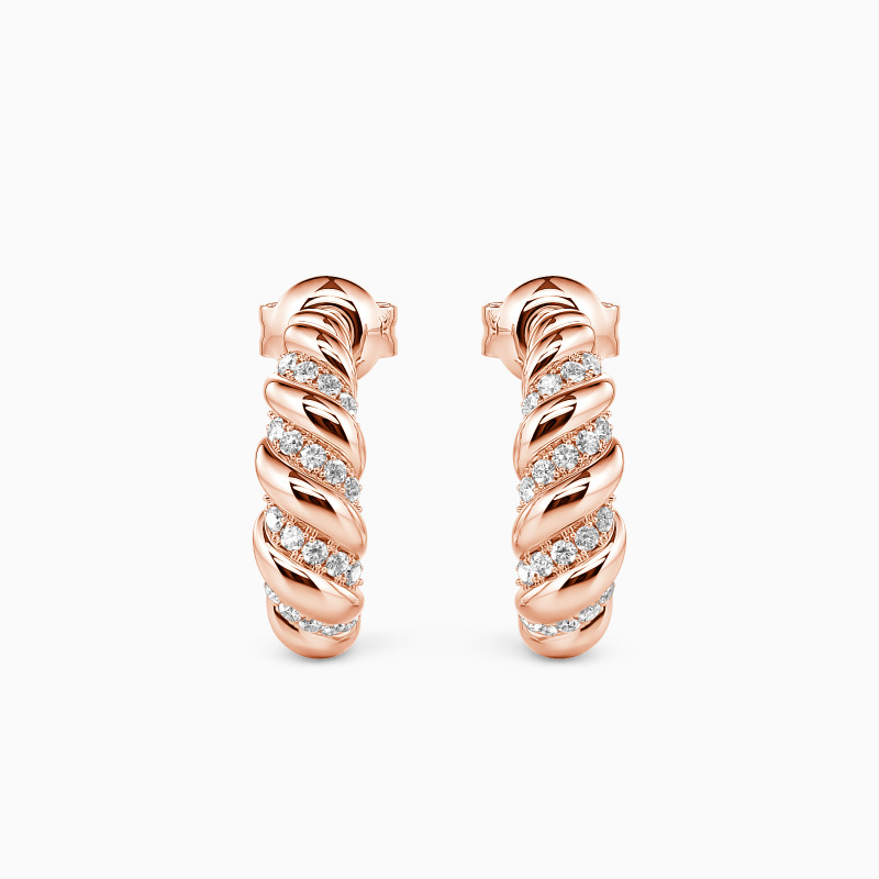 Nothing is more stylish than a pair of shimmering hoop earrings. Designed with excellent craftsmanship, these dainty pieces feature a swirling braid design. With several small round stones accented alternatively inside the doomed hoop, a strong personality shows up with glitters. Perfect for everyday wear, it's a must-have for her.
