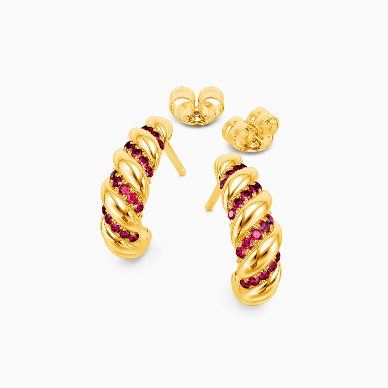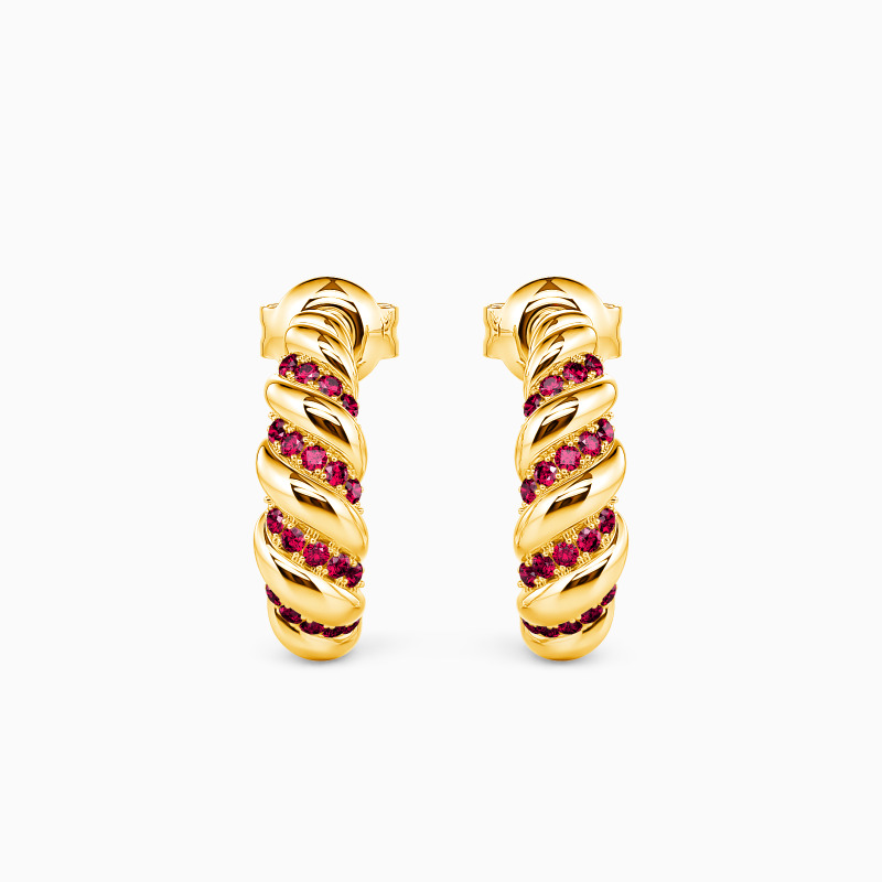 Nothing is more stylish than a pair of shimmering hoop earrings. Designed with excellent craftsmanship, these dainty pieces feature a swirling braid design. With several small round stones accented alternatively inside the doomed hoop, a strong personality shows up with glitters. Perfect for everyday wear, it's a must-have for her.