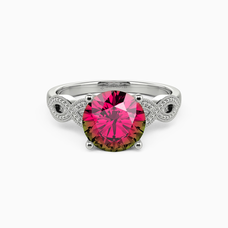 Shiny and glorious. This beautiful solitaire engagement ring features a sparkling round center gem in prongs that stands high on the elegantly twisted shank. Dotted with intricate milgrain embellishments, this will be a family heirloom she will forever cherish.