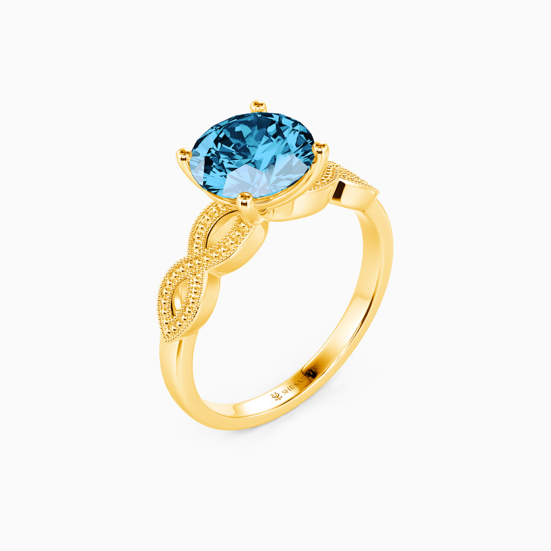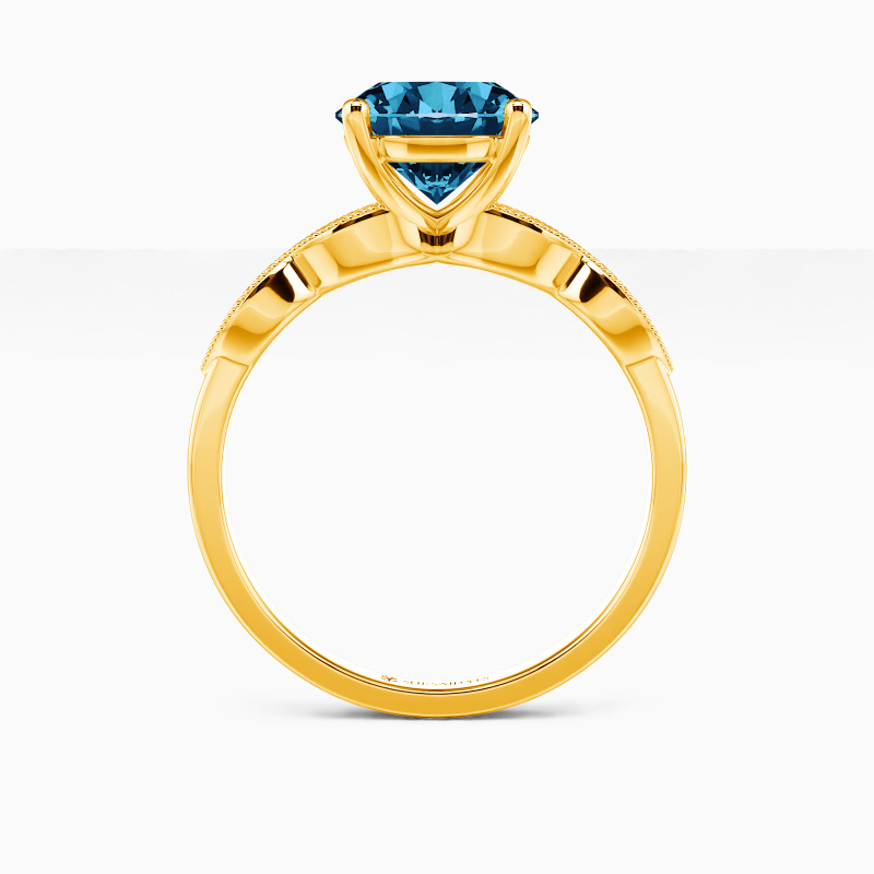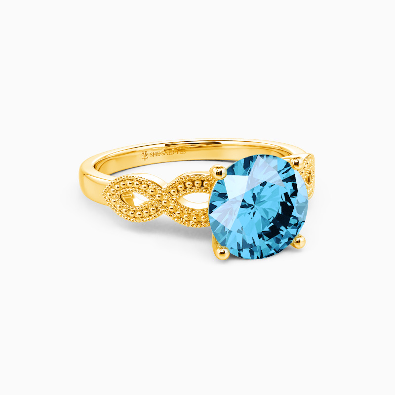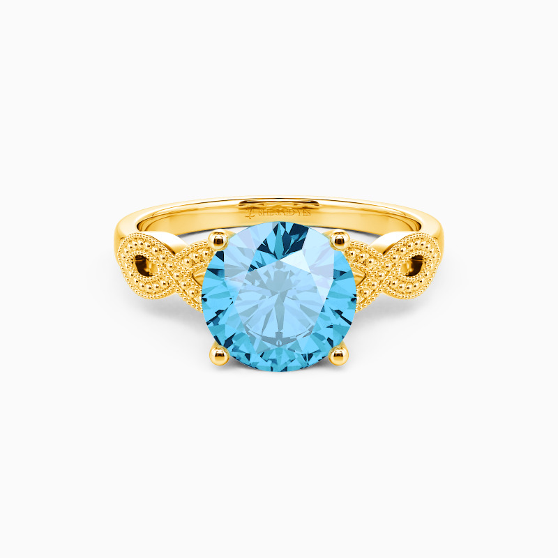 Shiny and glorious. This beautiful solitaire engagement ring features a sparkling round center gem in prongs that stands high on the elegantly twisted shank. Dotted with intricate milgrain embellishments, this will be a family heirloom she will forever cherish.