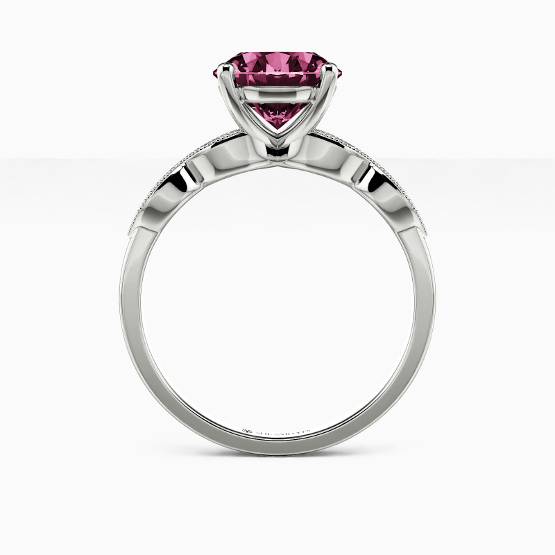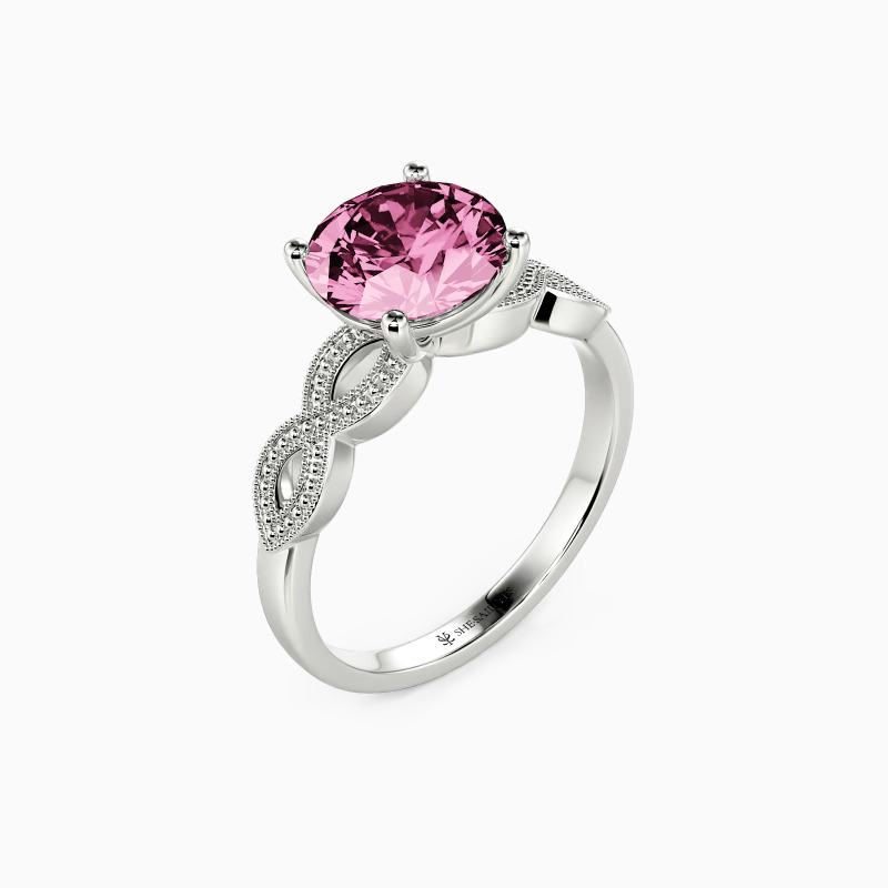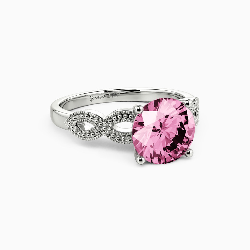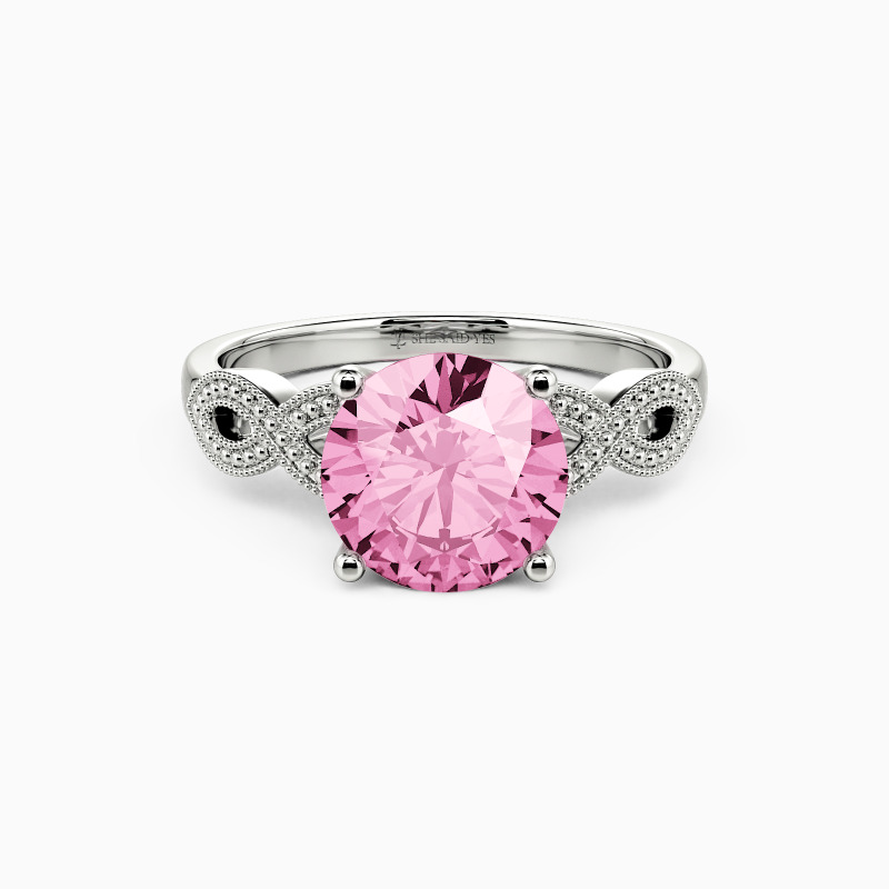 Shiny and glorious. This beautiful solitaire engagement ring features a sparkling round center gem in prongs that stands high on the elegantly twisted shank. Dotted with intricate milgrain embellishments, this will be a family heirloom she will forever cherish.