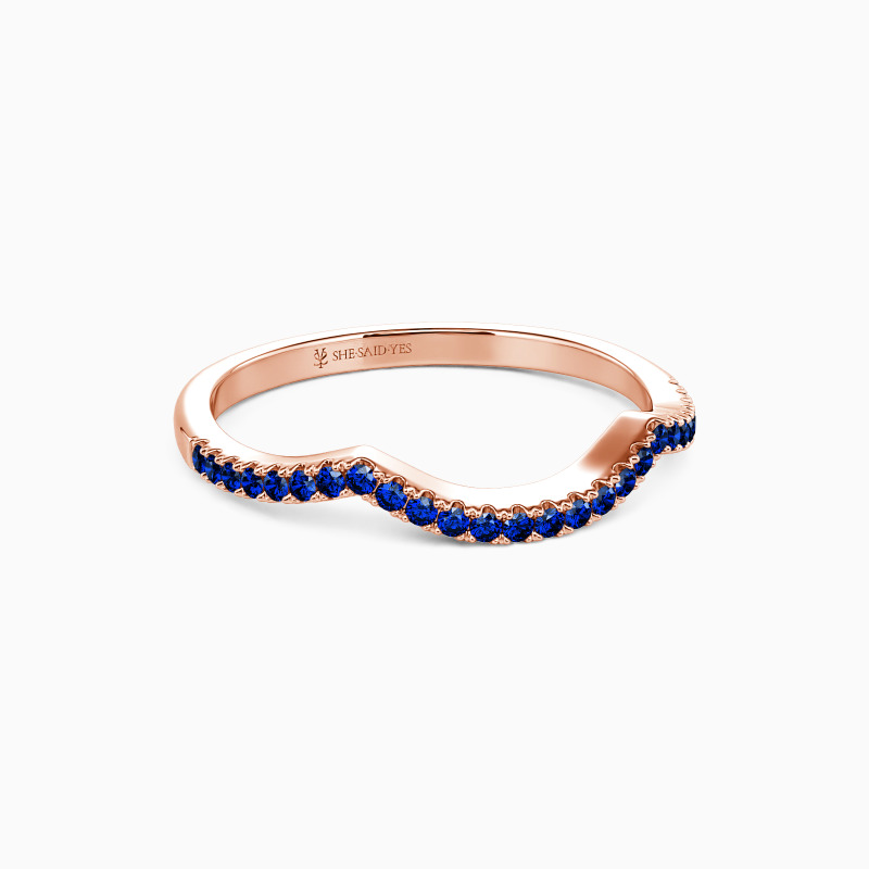 Our exquisite wedding band features a stunning curved design, meticulously crafted with paved gemstones that radiate elegance and sophistication. This versatile piece can be worn alone as a symbol of eternal love or paired flawlessly with your engagement ring, creating a harmonious and captivating ensemble that will forever commemorate your special day.