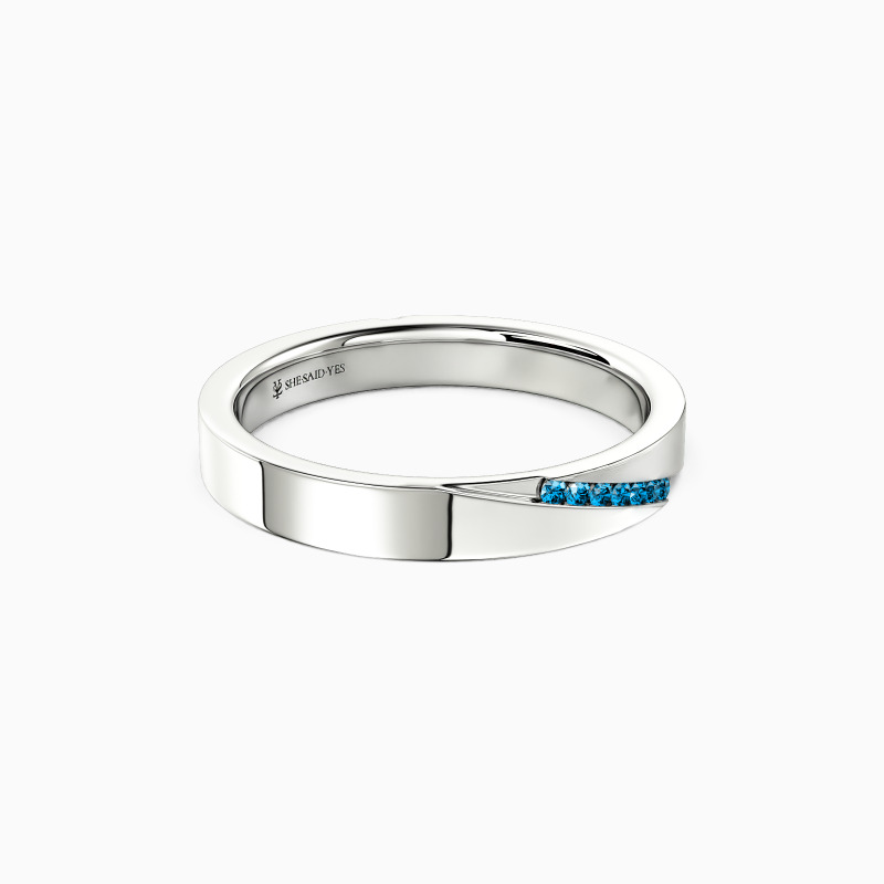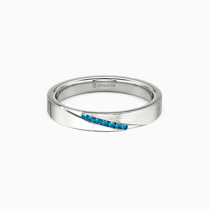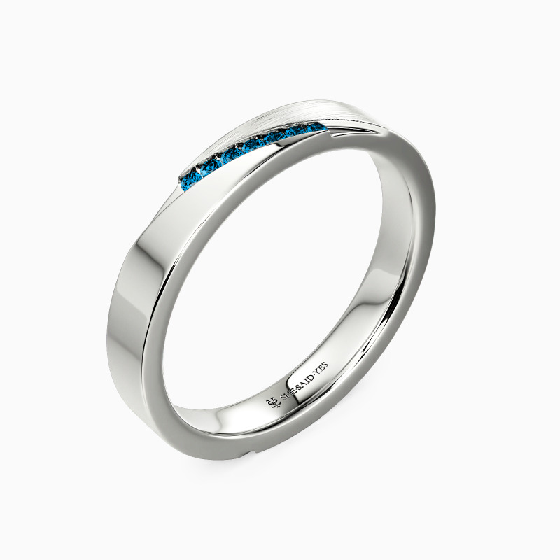 This wedding band artfully blends high-polish shine with brushed texture, catching light and shadow in equal measure. Tiny gems scatter like constellations along its surface—understated yet luminous. The duality speaks to modern femininity: refined yet bold, delicate but enduring. A ring that feels both effortless and unforgettable.