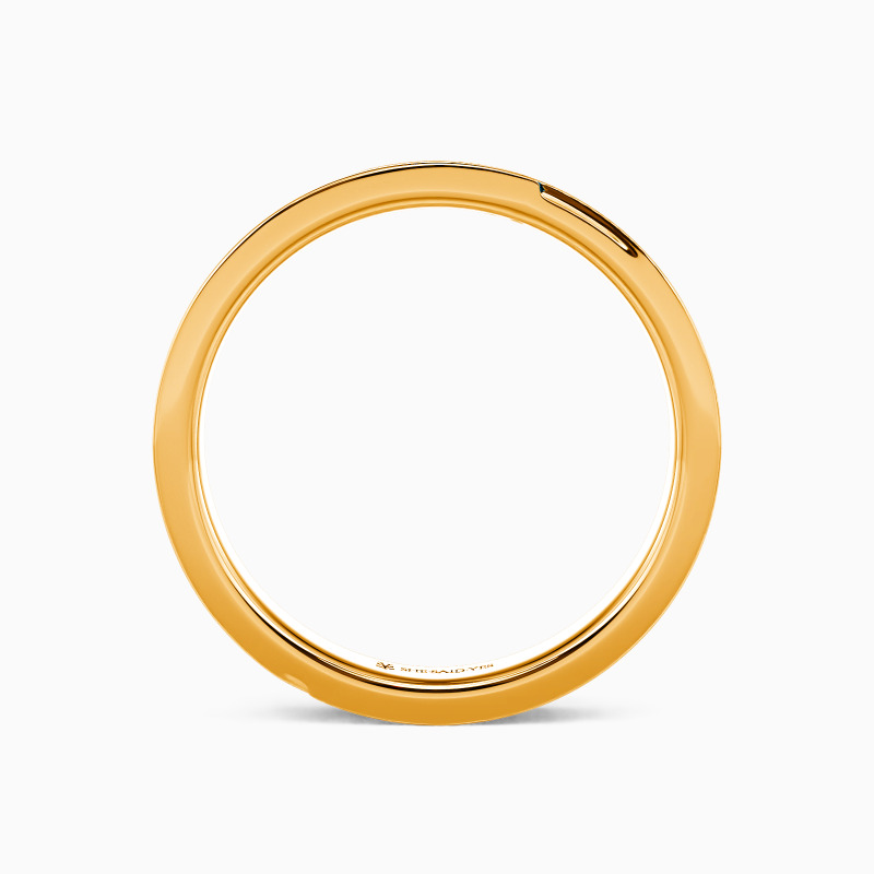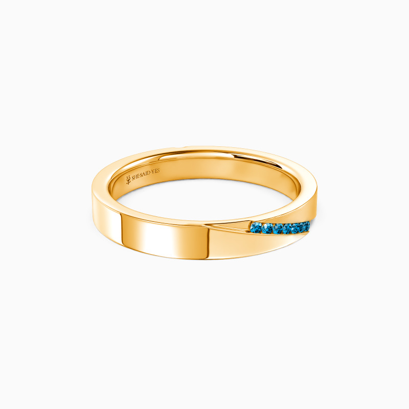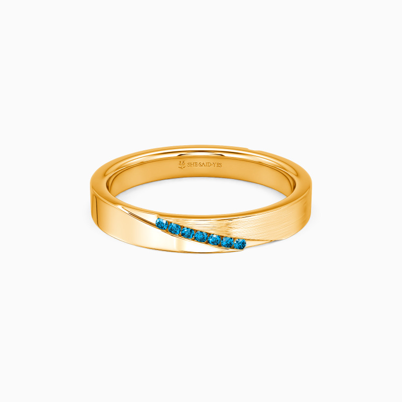 This wedding band artfully blends high-polish shine with brushed texture, catching light and shadow in equal measure. Tiny gems scatter like constellations along its surface—understated yet luminous. The duality speaks to modern femininity: refined yet bold, delicate but enduring. A ring that feels both effortless and unforgettable.