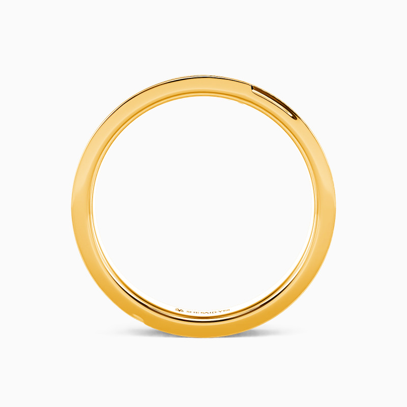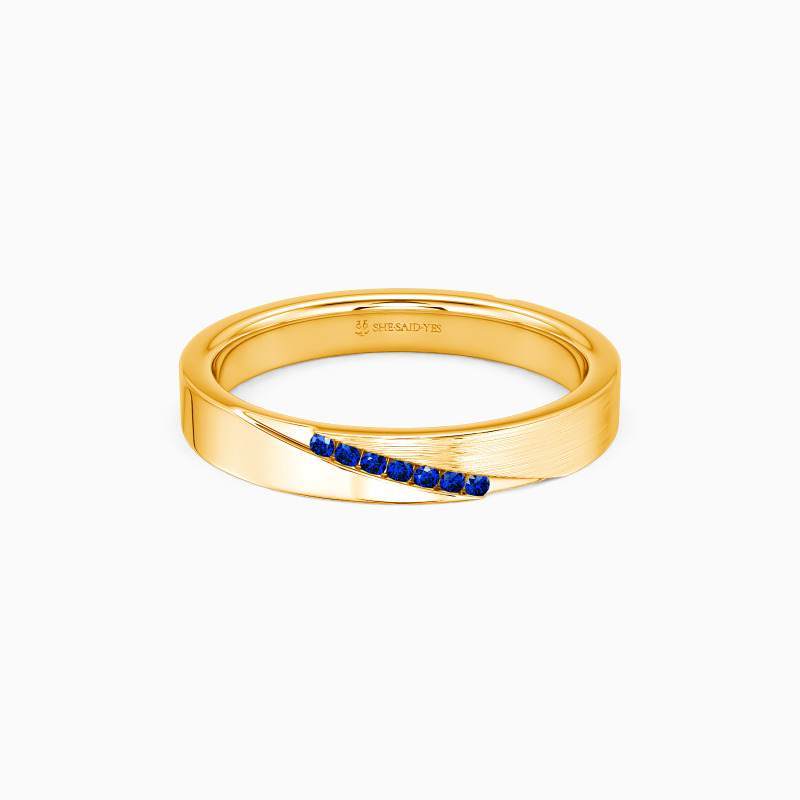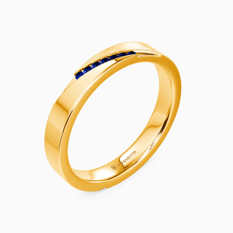 This wedding band artfully blends high-polish shine with brushed texture, catching light and shadow in equal measure. Tiny gems scatter like constellations along its surface—understated yet luminous. The duality speaks to modern femininity: refined yet bold, delicate but enduring. A ring that feels both effortless and unforgettable.