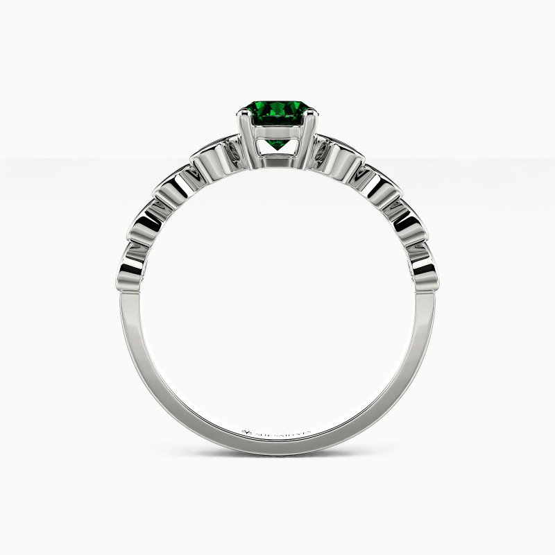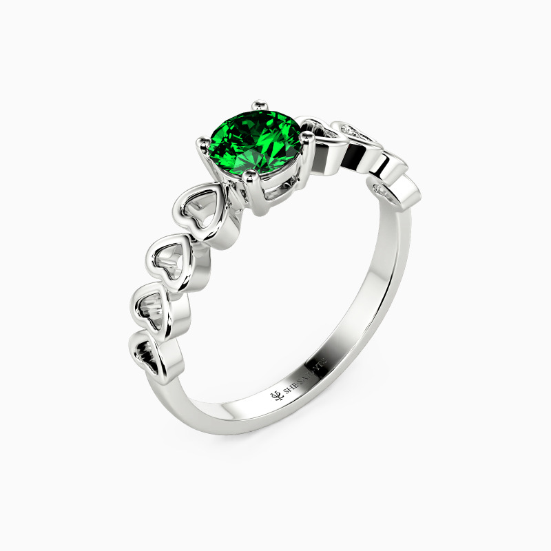 Whimsical in design, this engagement ring is a high representation of the fanciful style. Crafted in polished metal, this band carves a whole row of heart frames arching toward the round-cut center stone. Highlighting the radiance of the center stone with boldness, this wedding ring will catch your sight at first glance.