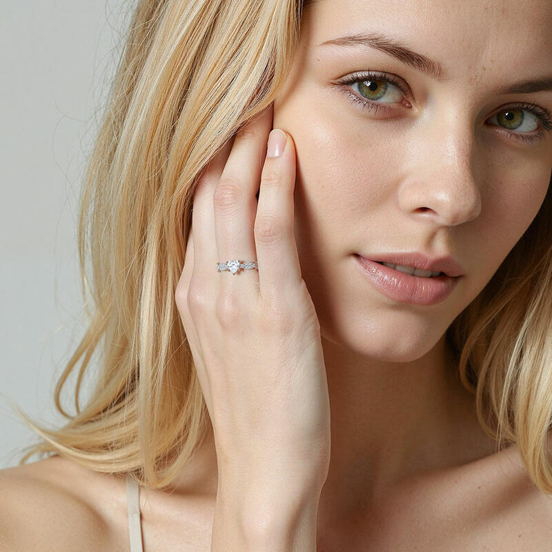 Classic and feminine. Our captivating side-stone engagement ring grabs your attention with a dazzling heart-shaped center stone. And the gracefully twisted shank with glimmering accents covers half of the band for added radiance. Every time I see you, my heart beats faster.