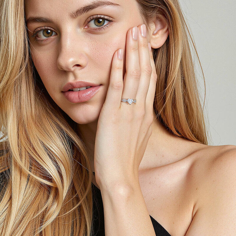 "The String of My Heart" 0.5ct Heart Cut Side Stone Engagement Ring