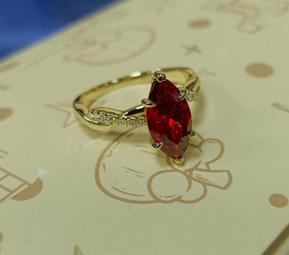 A dazzling marquise-cut center stone is nestled within six claws, standing perfectly on the intertwined shank. A row of sparkling accent stones is paved on one ribbon, adding extra sparkle and chic to the entire ring.