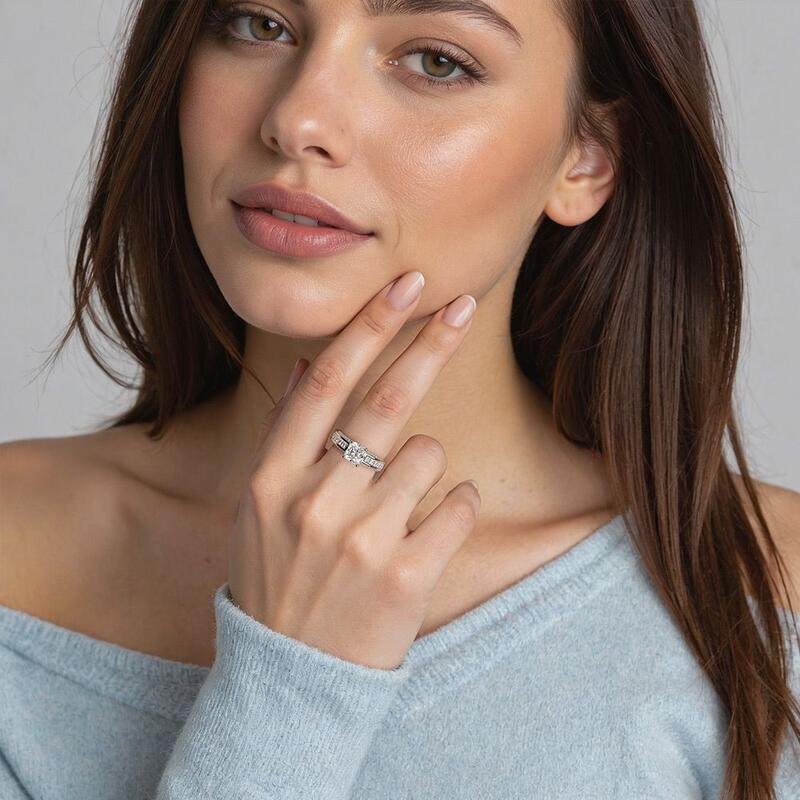 "Tune Of Love" Radiant Cut Side Stone Engagement Ring