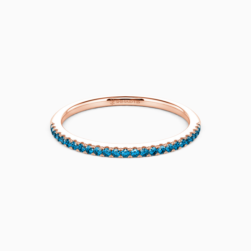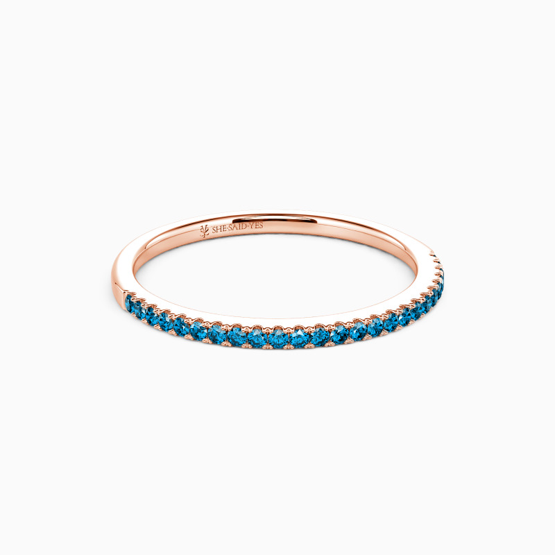 A timeless wedding band for every beautiful bride-to-be. This classic half-eternity wedding ring features a row of round gems along the polished shank. Blending a minimalist design with shiny radiance, it fits perfectly in any style of your attire.