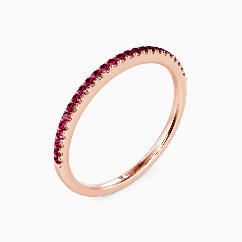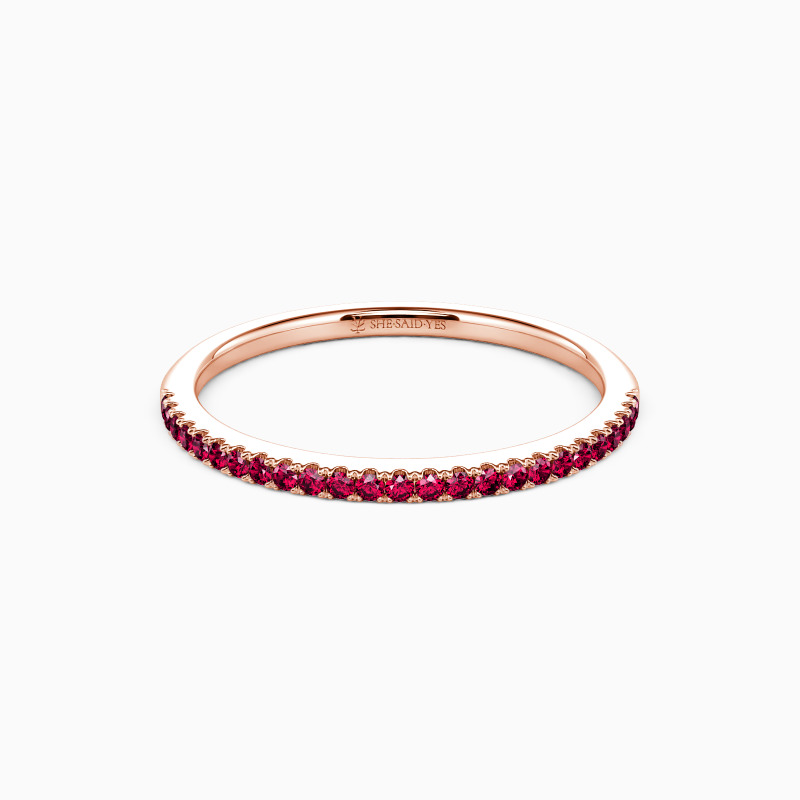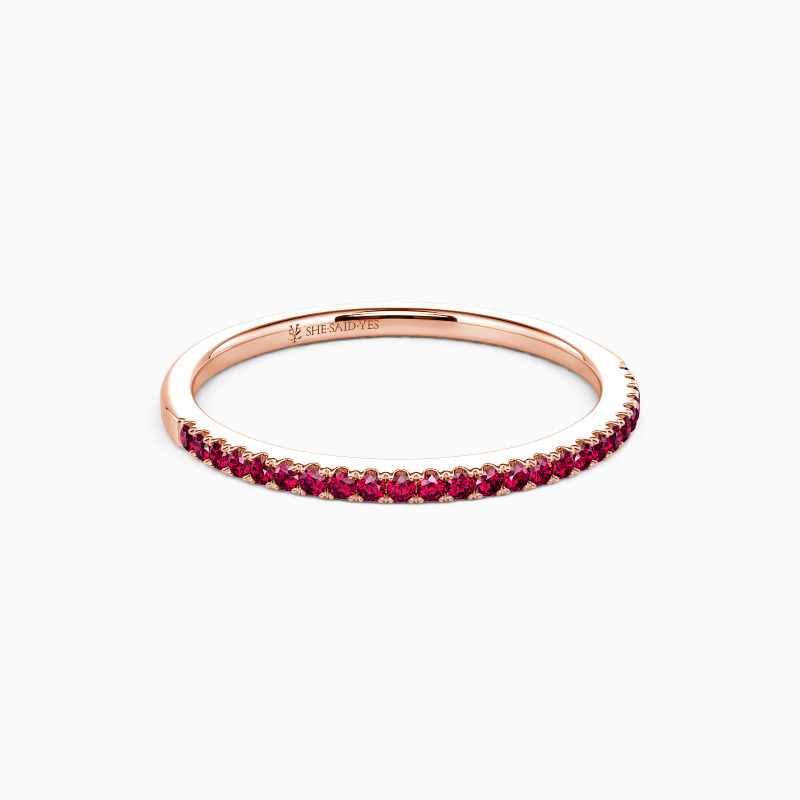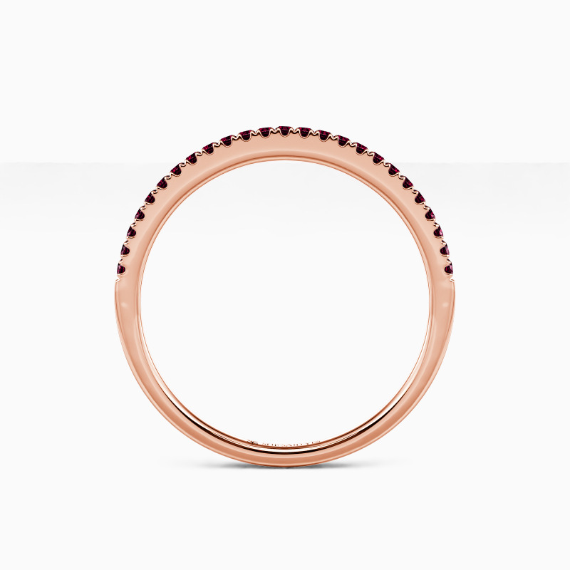 A timeless wedding band for every beautiful bride-to-be. This classic half-eternity wedding ring features a row of round gems along the polished shank. Blending a minimalist design with shiny radiance, it fits perfectly in any style of your attire.