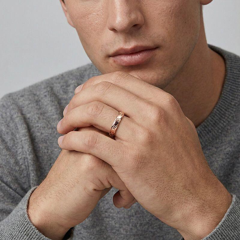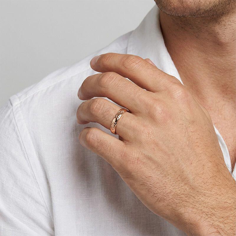 This simple wedding band combines a modern look with a traditional style. It sculptures the repetitive patterns of abstract round and rhombus on the polished surface, bringing a hint of contemporary style with its unique design. The best choice from SHE·SAID·YES provides you with a cherished time.