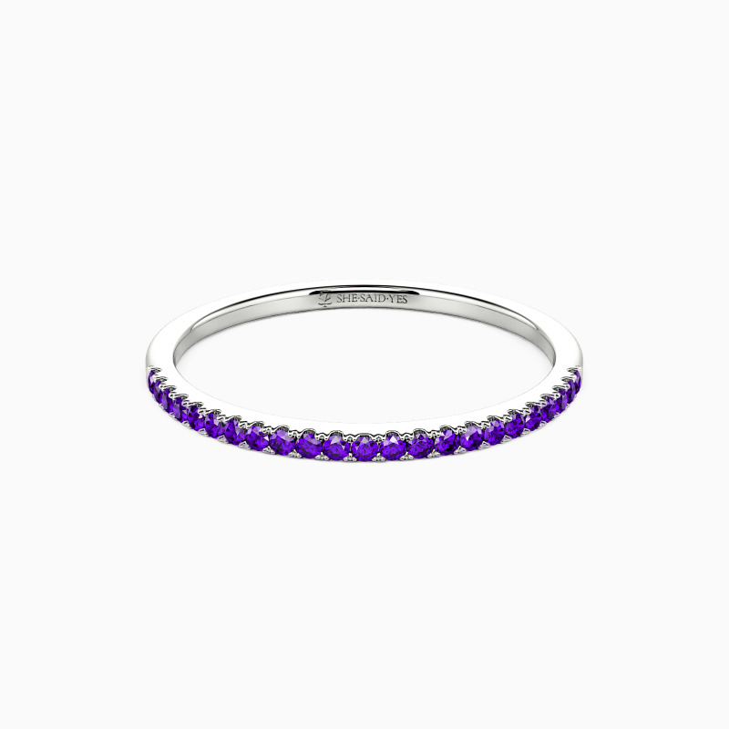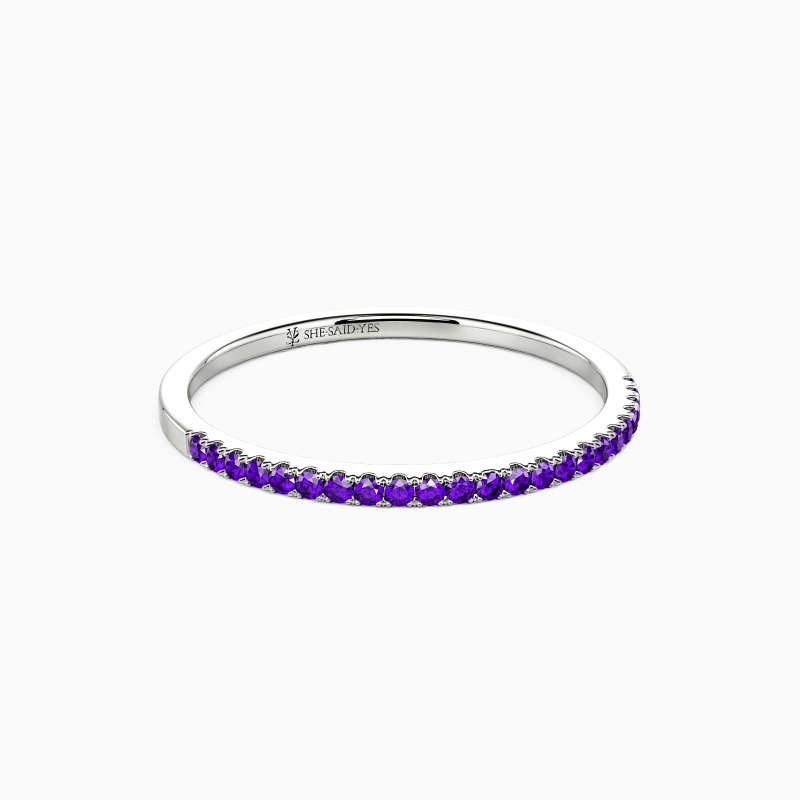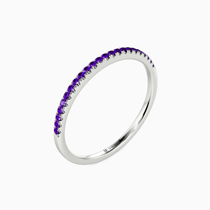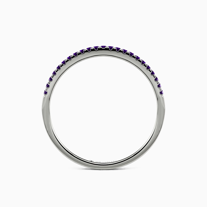 Gleaming accents and polished shank combine in a simple design you can wear every day. You could never go wrong with such a classic half eternity wedding band. It portrays your elegance effortlessly in its shining beauty. Stacking with your engagement ring or wearing it solo is both an ideal choice; this timeless design is a dazzling symbol of your love.