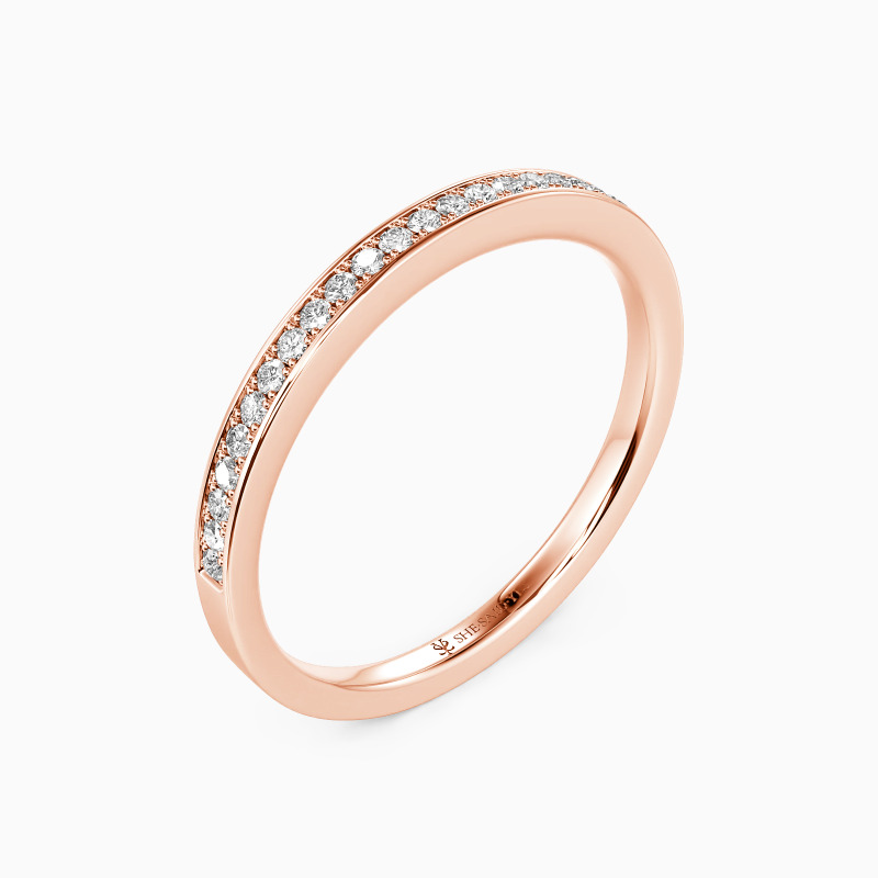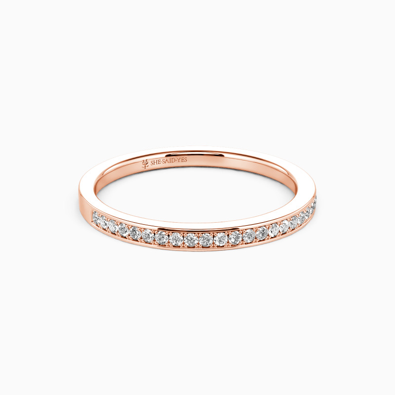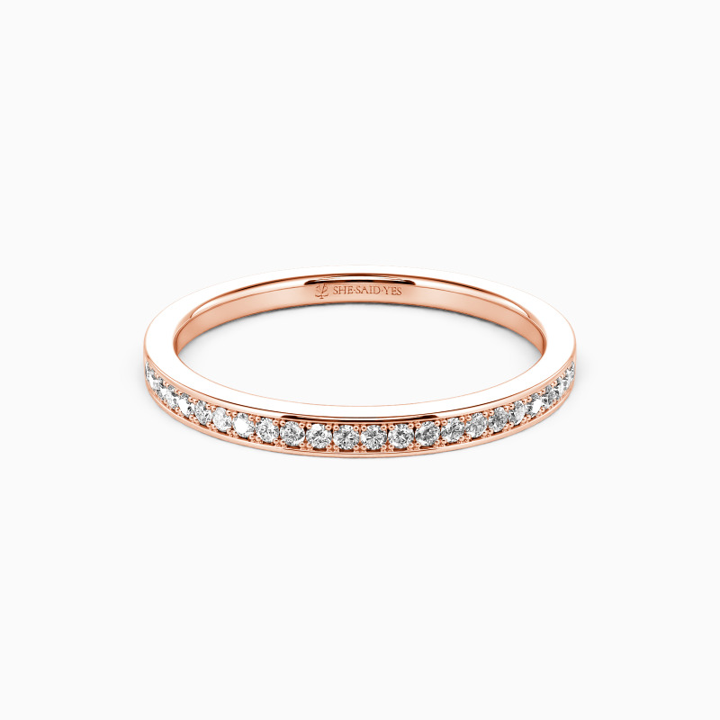 Infuse a touch of sheen into your beautiful attire; this dainty wedding band will be your favorite. It features a row of shining gems accenting the shank with exquisite milgrain embellishment, showcasing the final aesthetic of the minimalist.