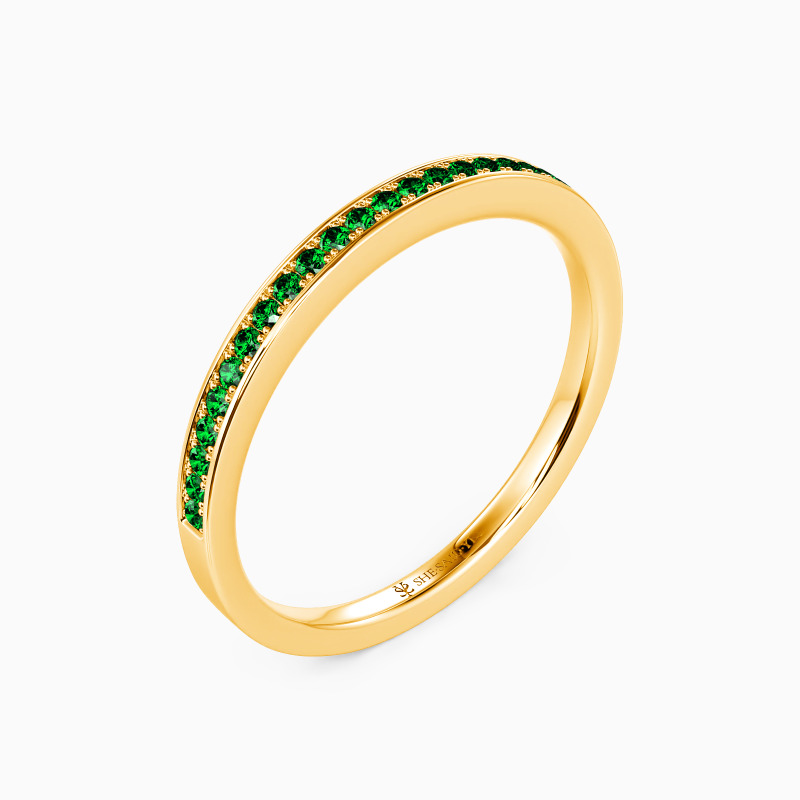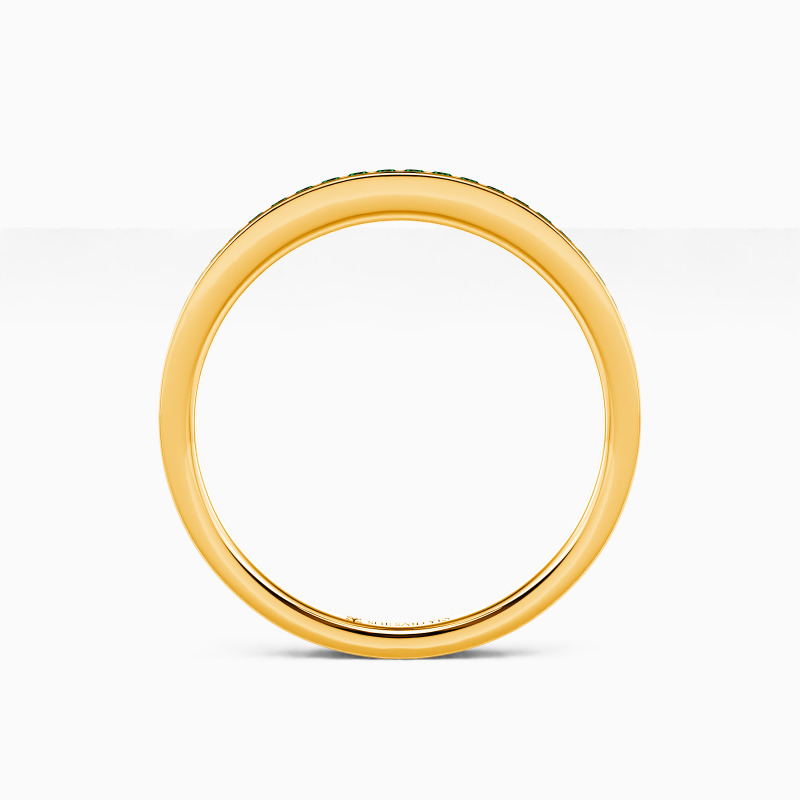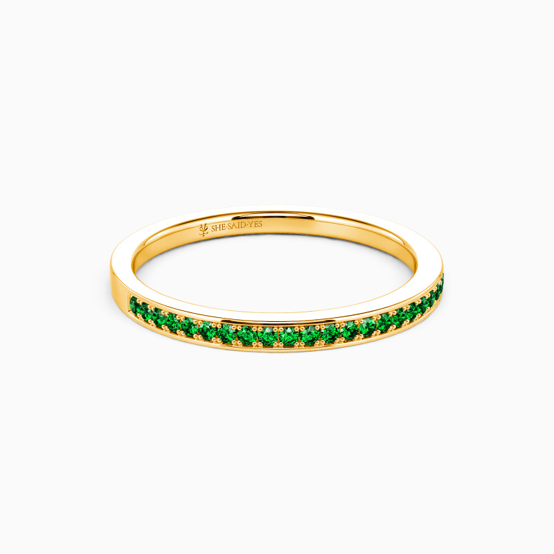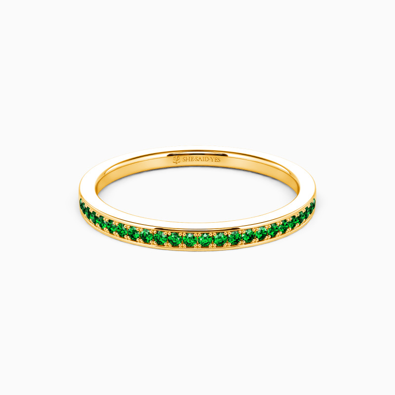 Infuse a touch of sheen into your beautiful attire; this dainty wedding band will be your favorite. It features a row of shining gems accenting the shank with exquisite milgrain embellishment, showcasing the final aesthetic of the minimalist.