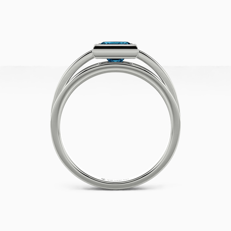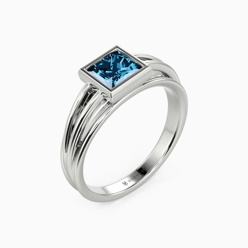 Stylish and modern. This beautiful solitaire engagement ring stands out for the glimmering princess-cut stone in the bezel. The polished finish and unique shank design make the brilliance of the center fully visible. It's an absolutely right choice for contemporary women.