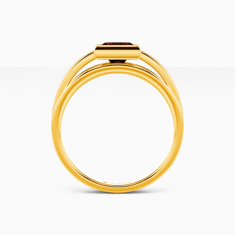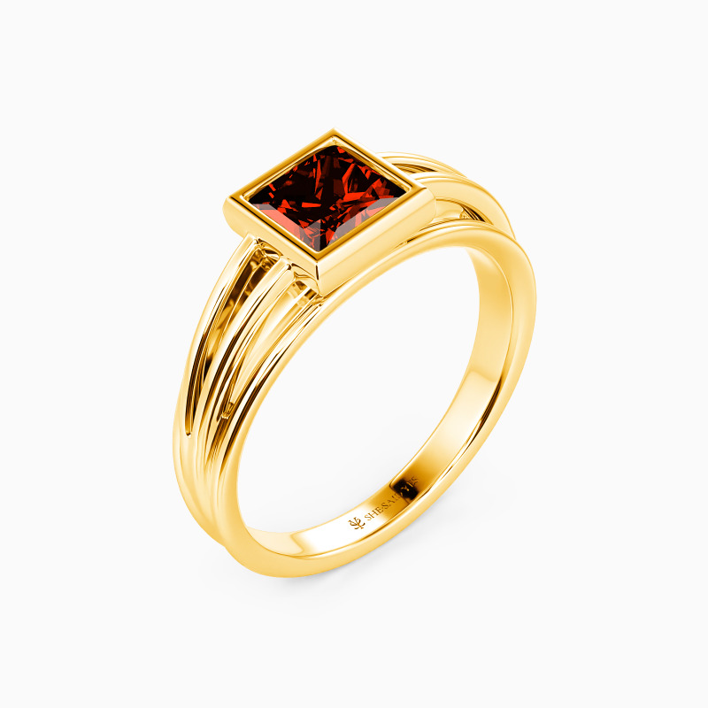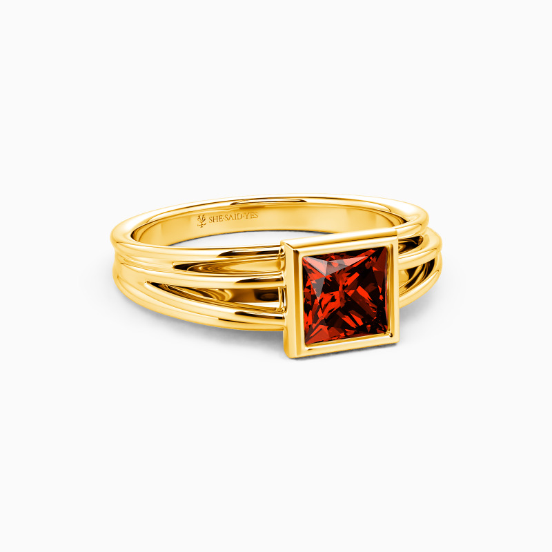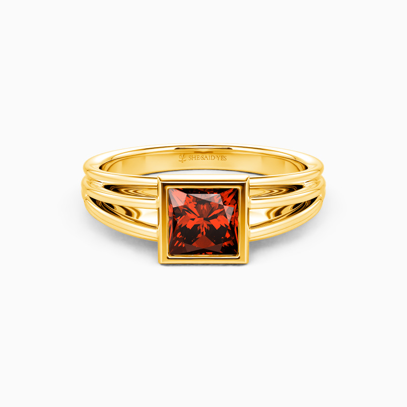 Stylish and modern. This beautiful solitaire engagement ring stands out for the glimmering princess-cut stone in the bezel. The polished finish and unique shank design make the brilliance of the center fully visible. It's an absolutely right choice for contemporary women.
